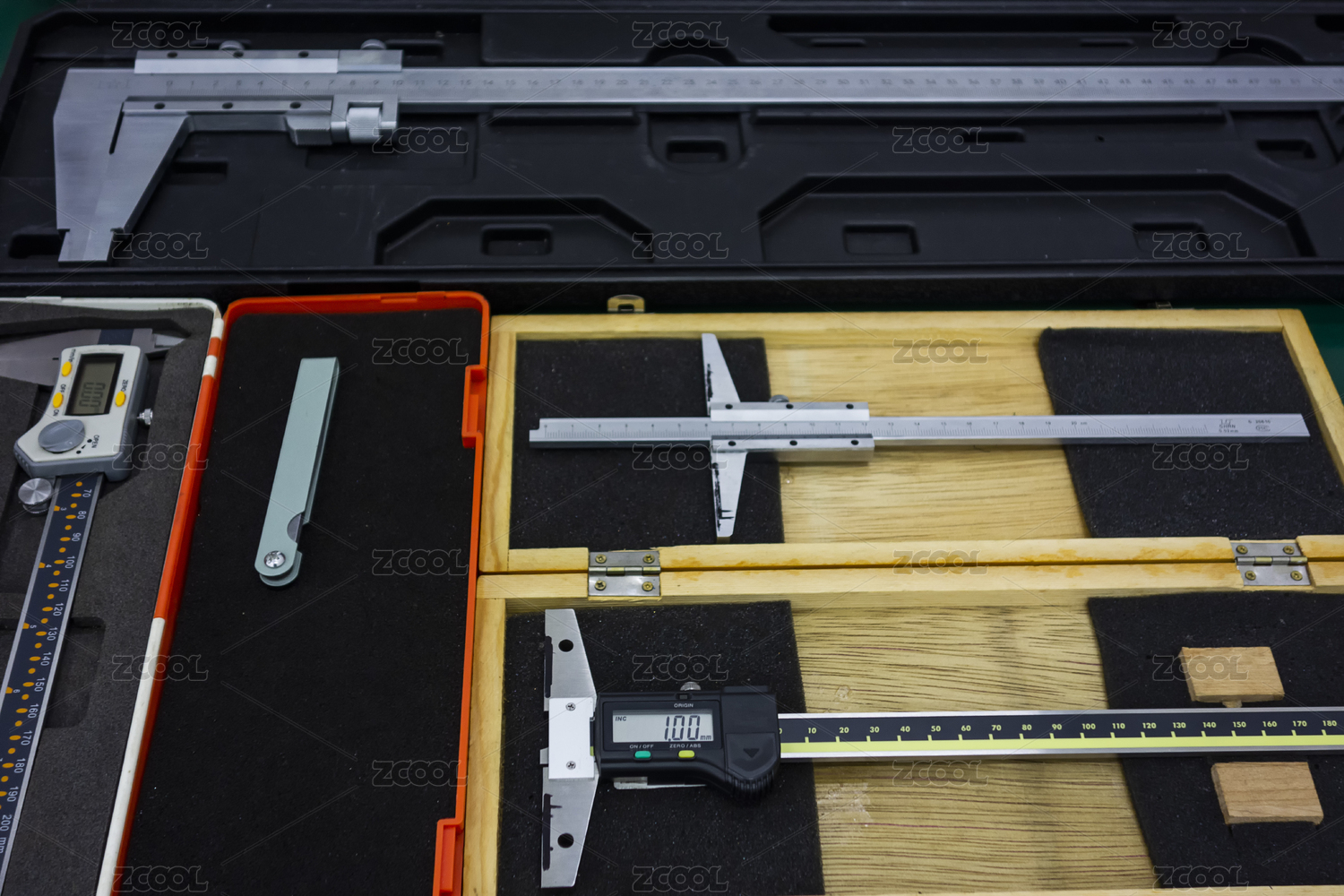 油污桌子上的游標(biāo)卡尺和金屬米尺