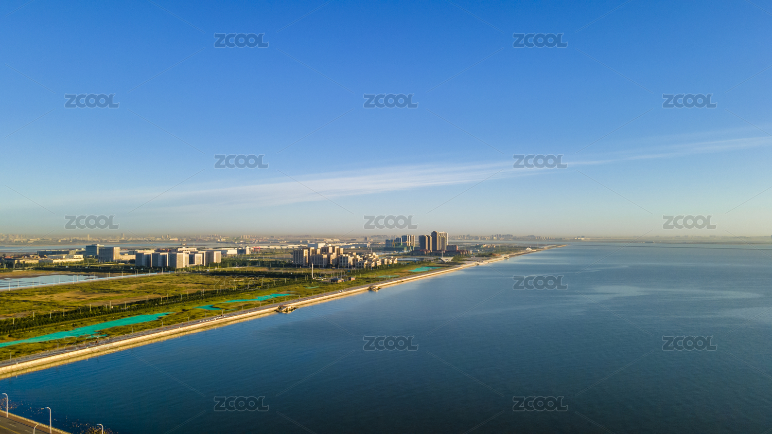 中國(guó)天津東疆港沿海免費(fèi)海灘航拍圖