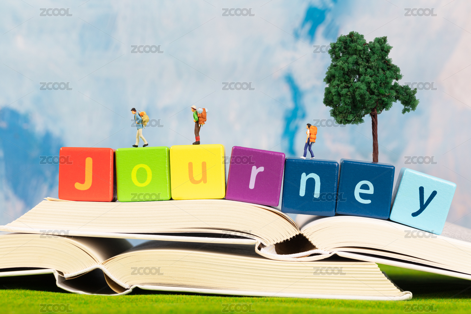 秋天彩色彩虹積木英文字母單詞journey徒步旅行人