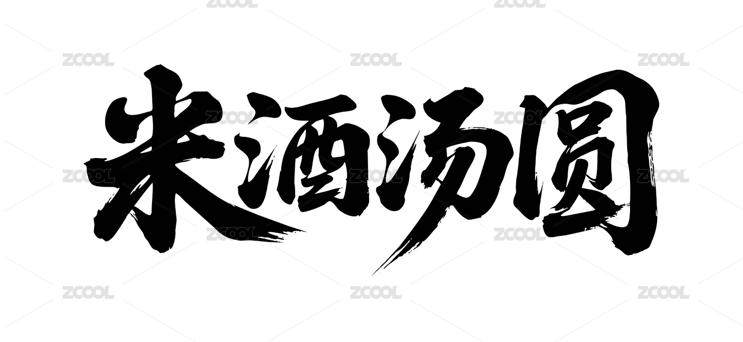 米酒湯圓矢量書法手寫毛筆字