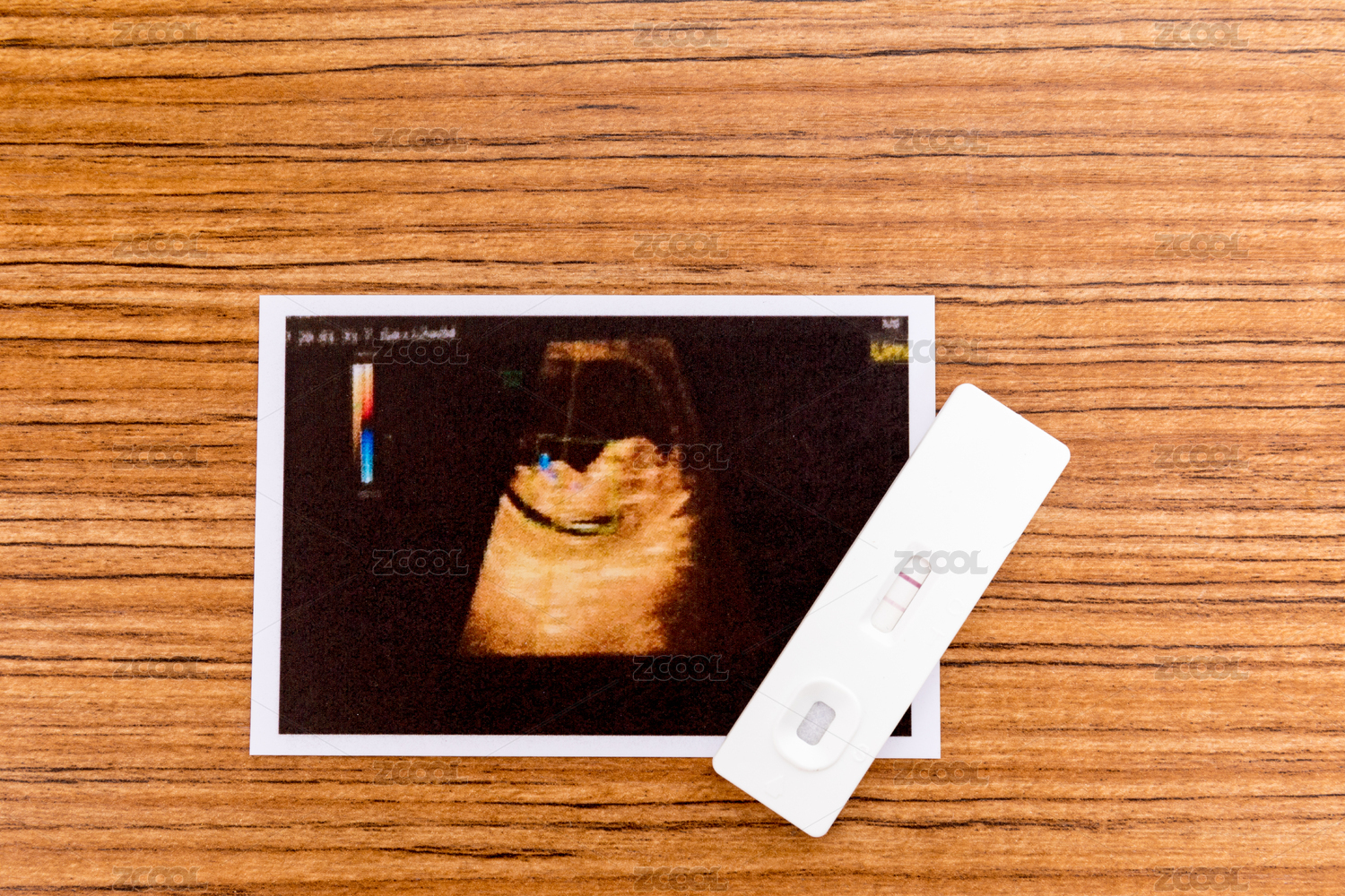 桌面上的一根驗(yàn)孕棒和一張?zhí)築超照