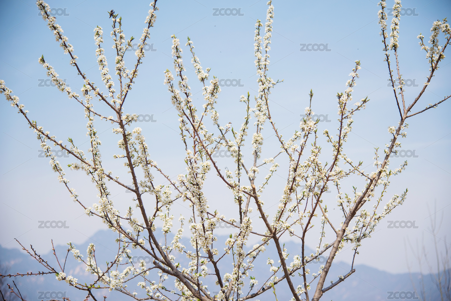 春季盛開的白色櫻花特寫