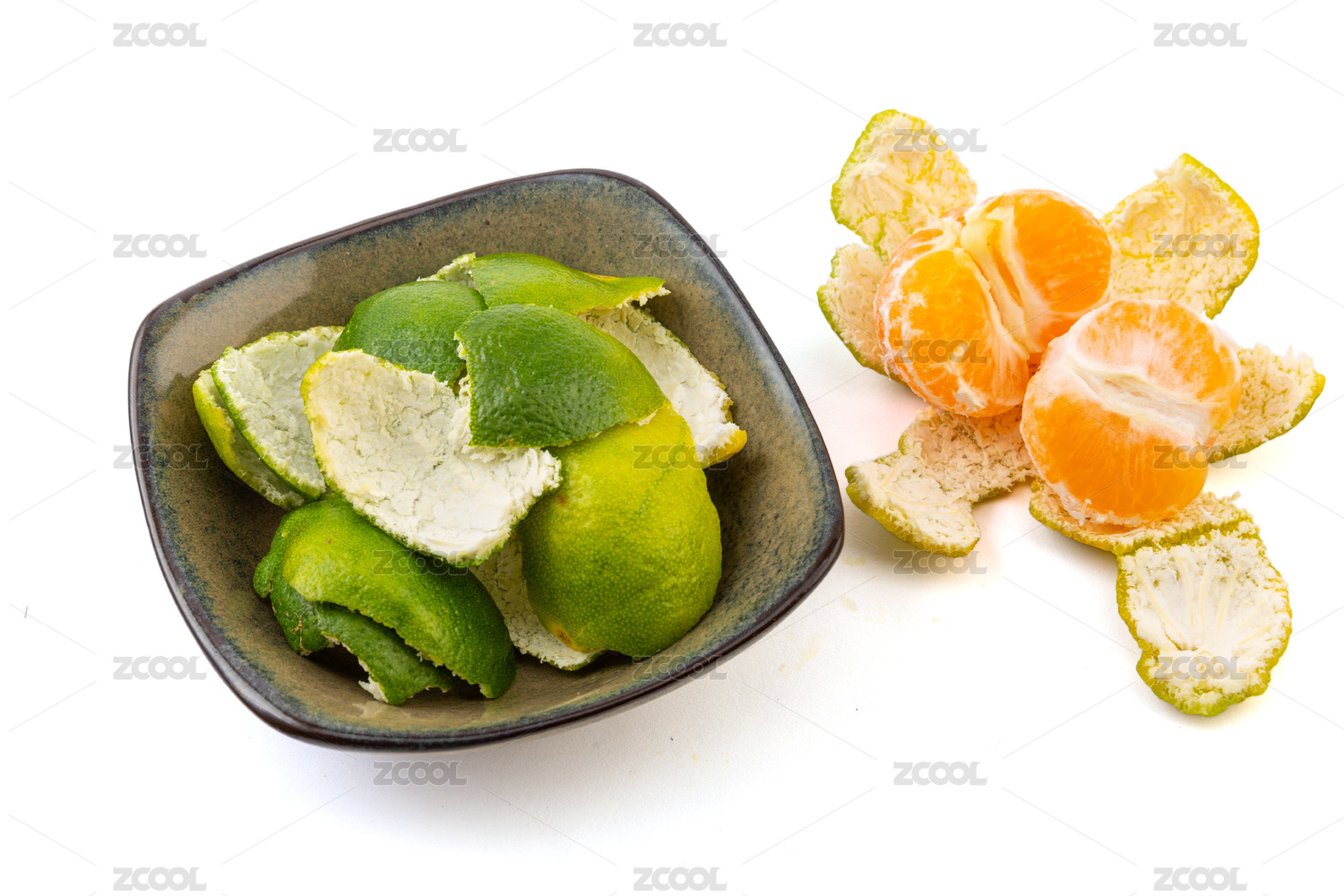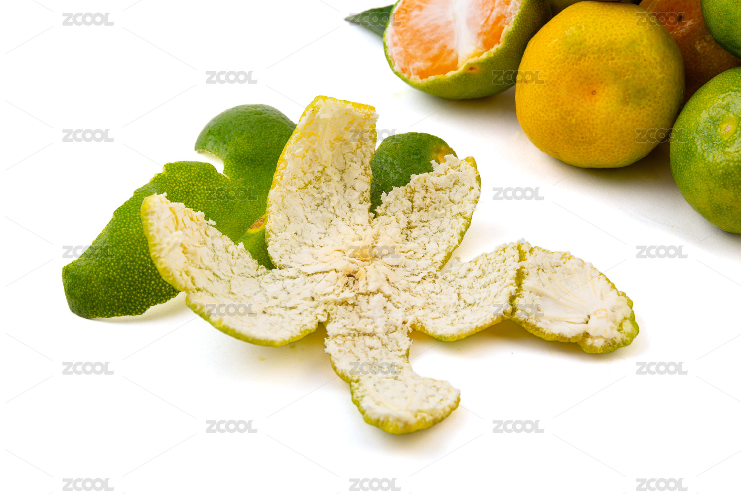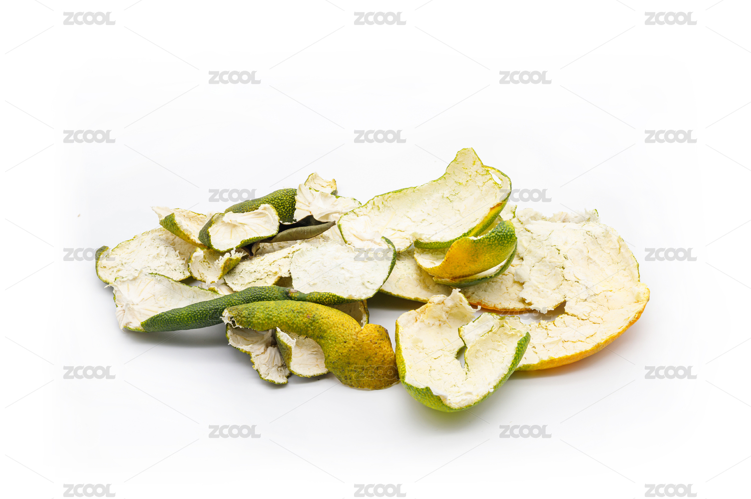 白色背景上的一堆橘子皮