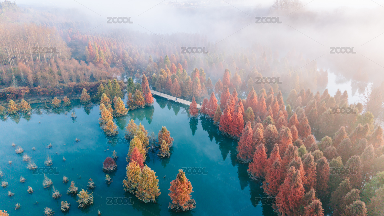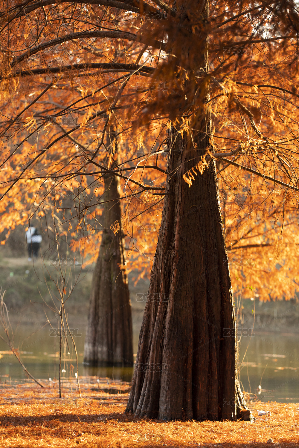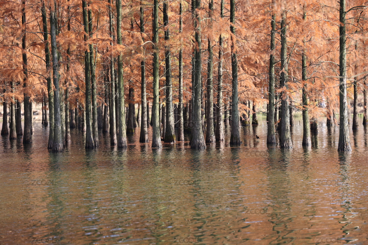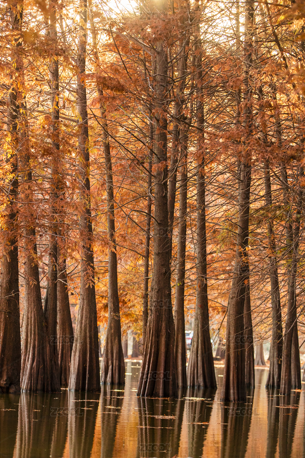 深秋季節(jié)上海崇明島的水杉林色彩妖嬈