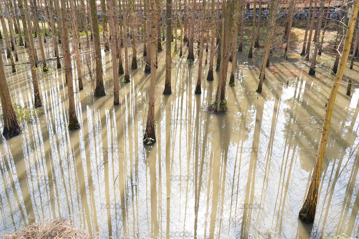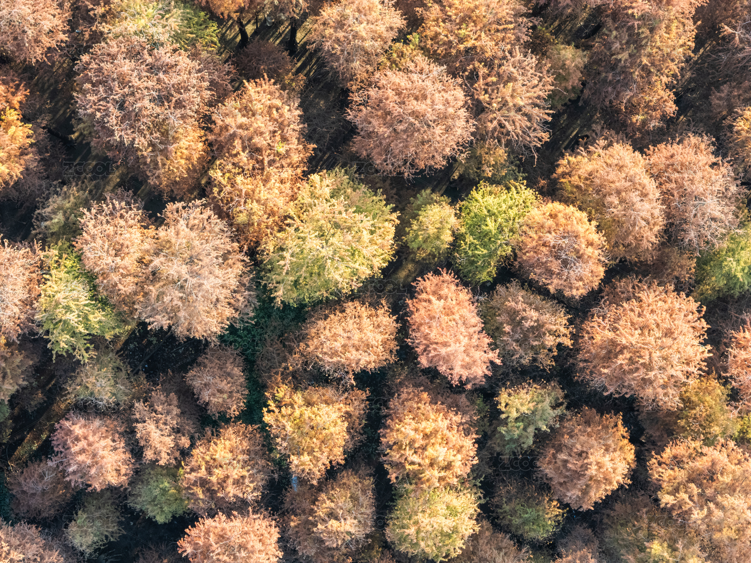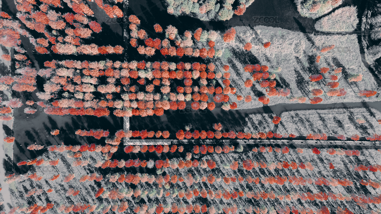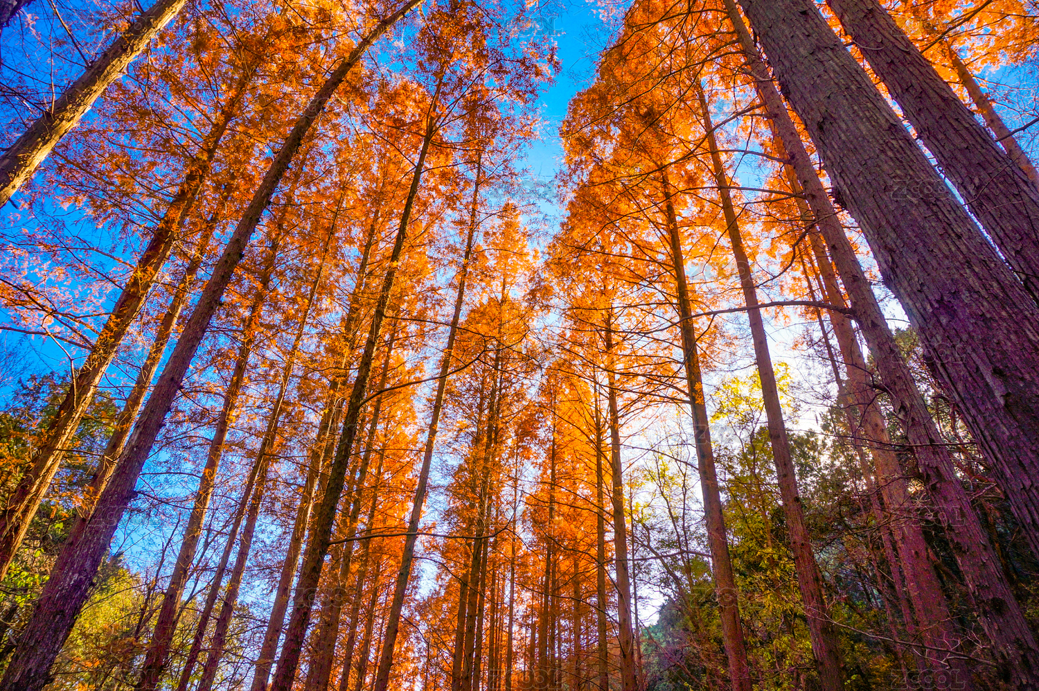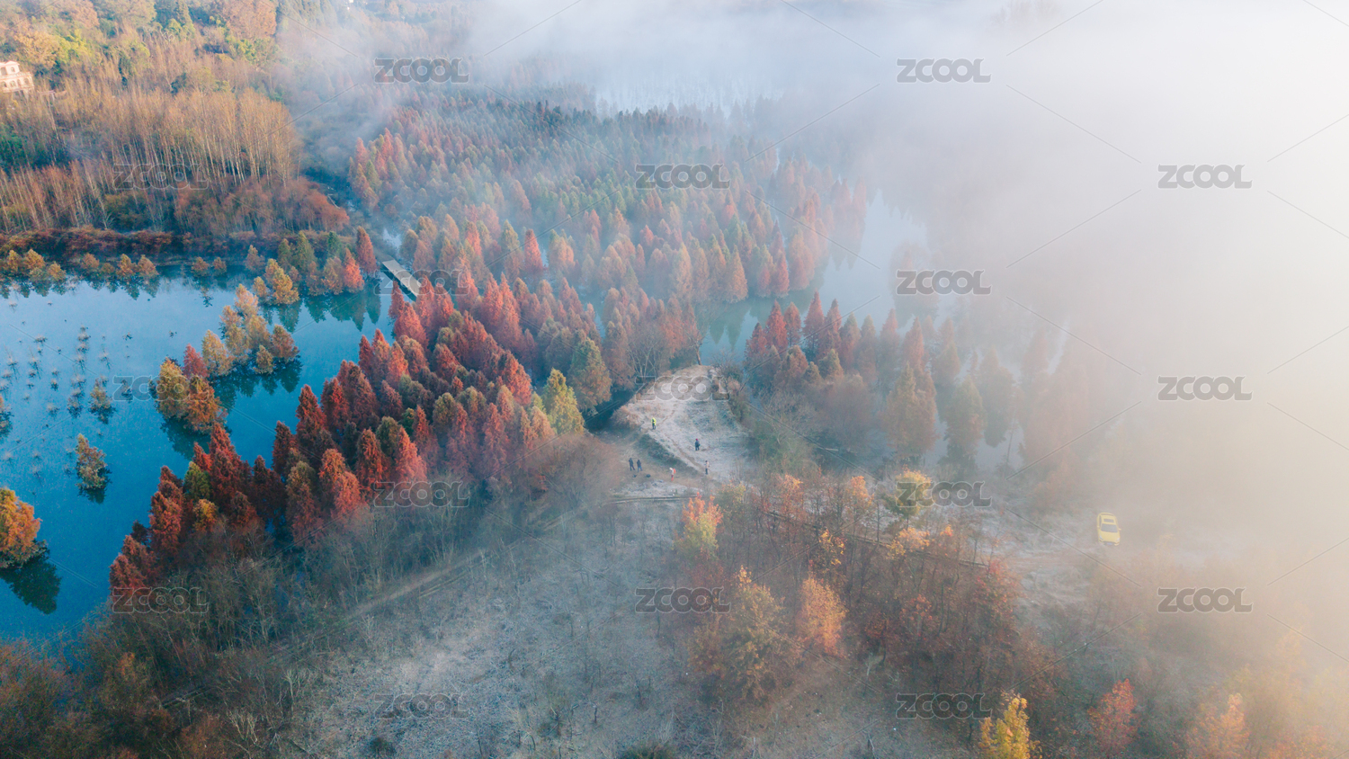 深秋季節(jié)上海崇明島的水杉林色彩妖嬈
