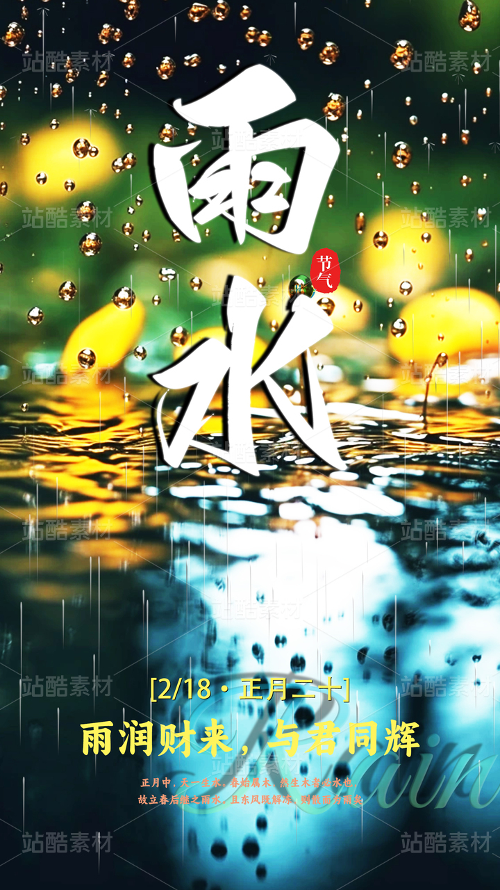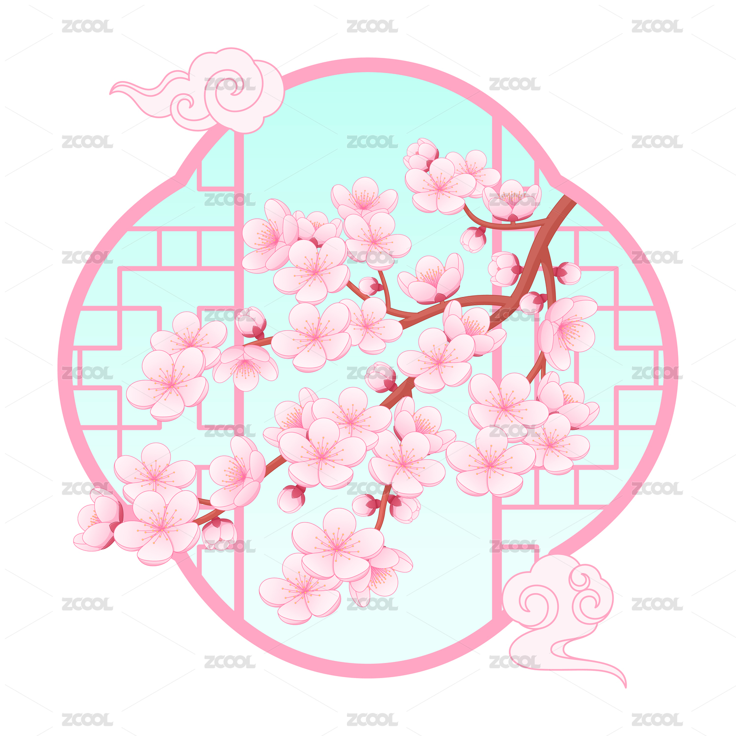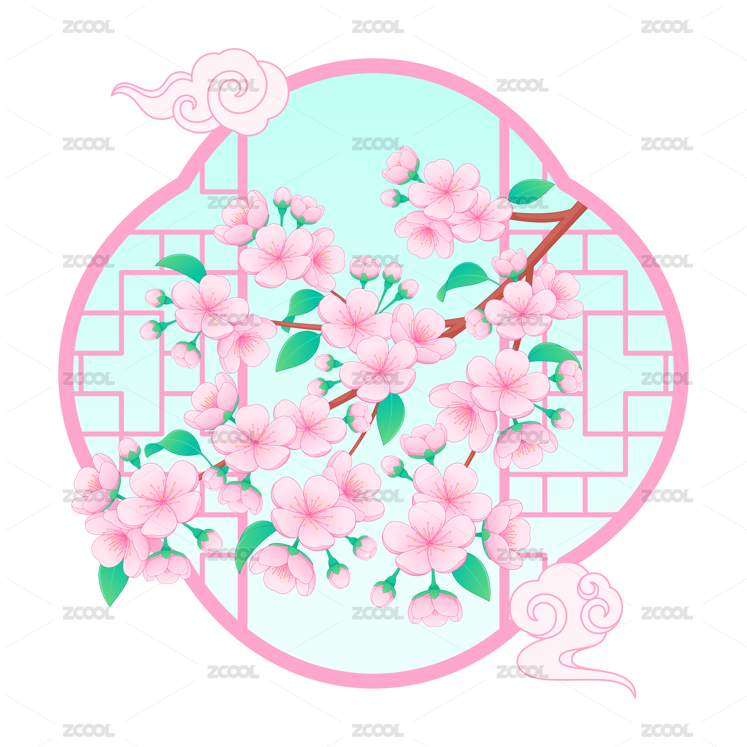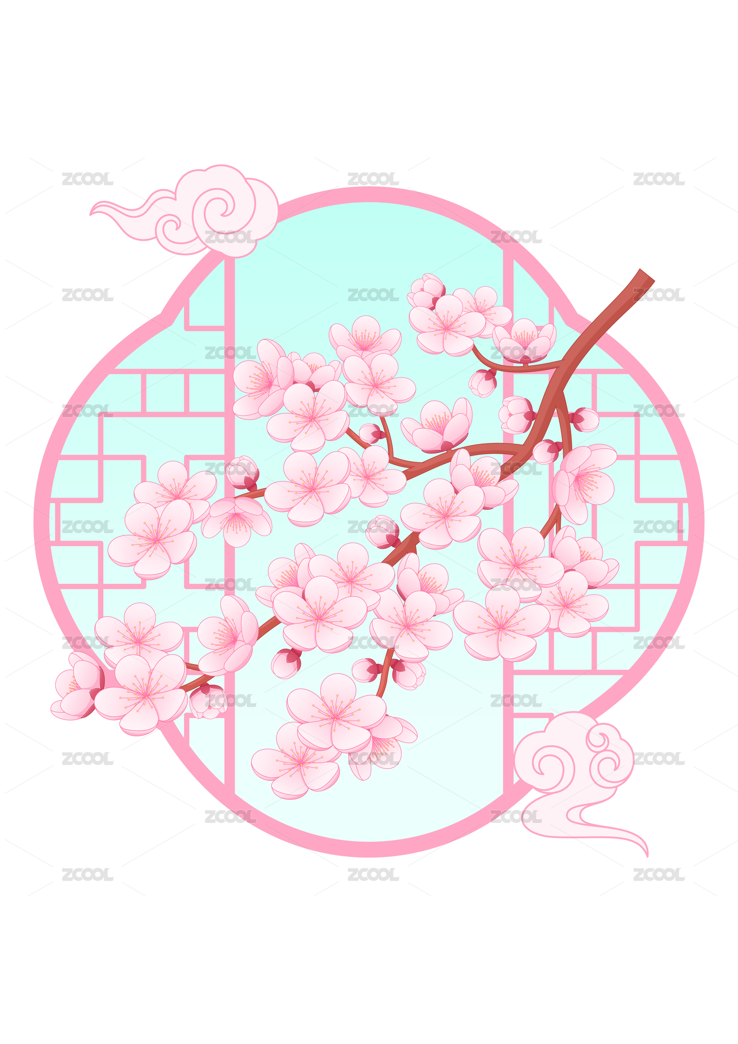 中國二十四節(jié)氣雨水花卉櫻花國潮插畫