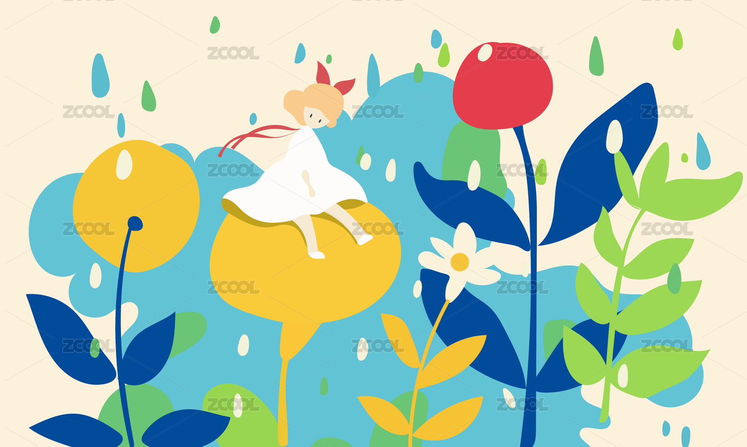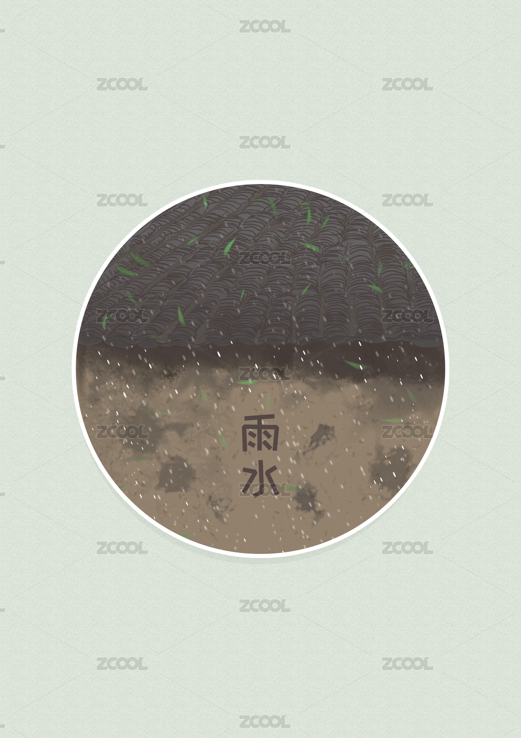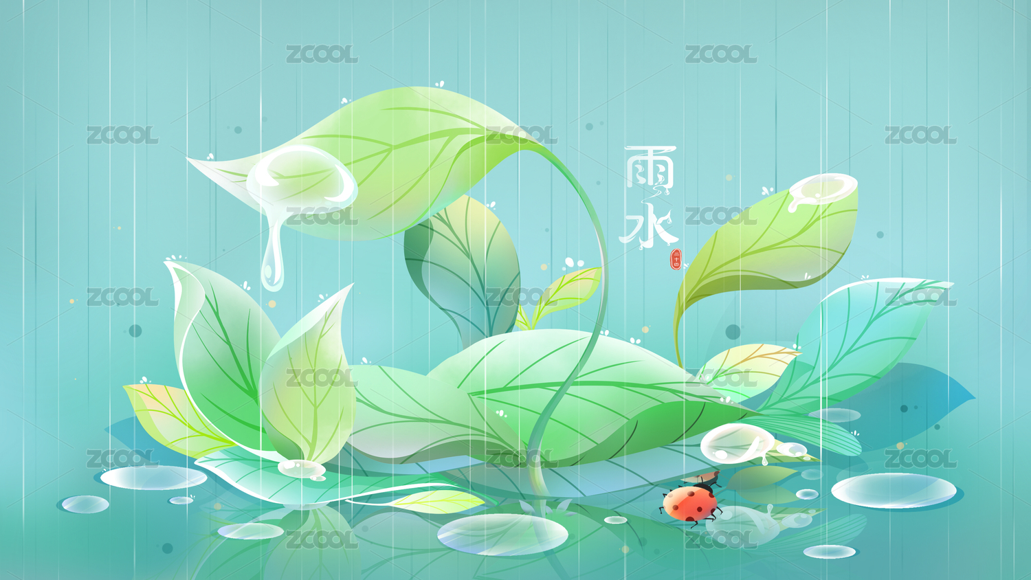 綠色調(diào)國風(fēng)山水畫雨水插畫