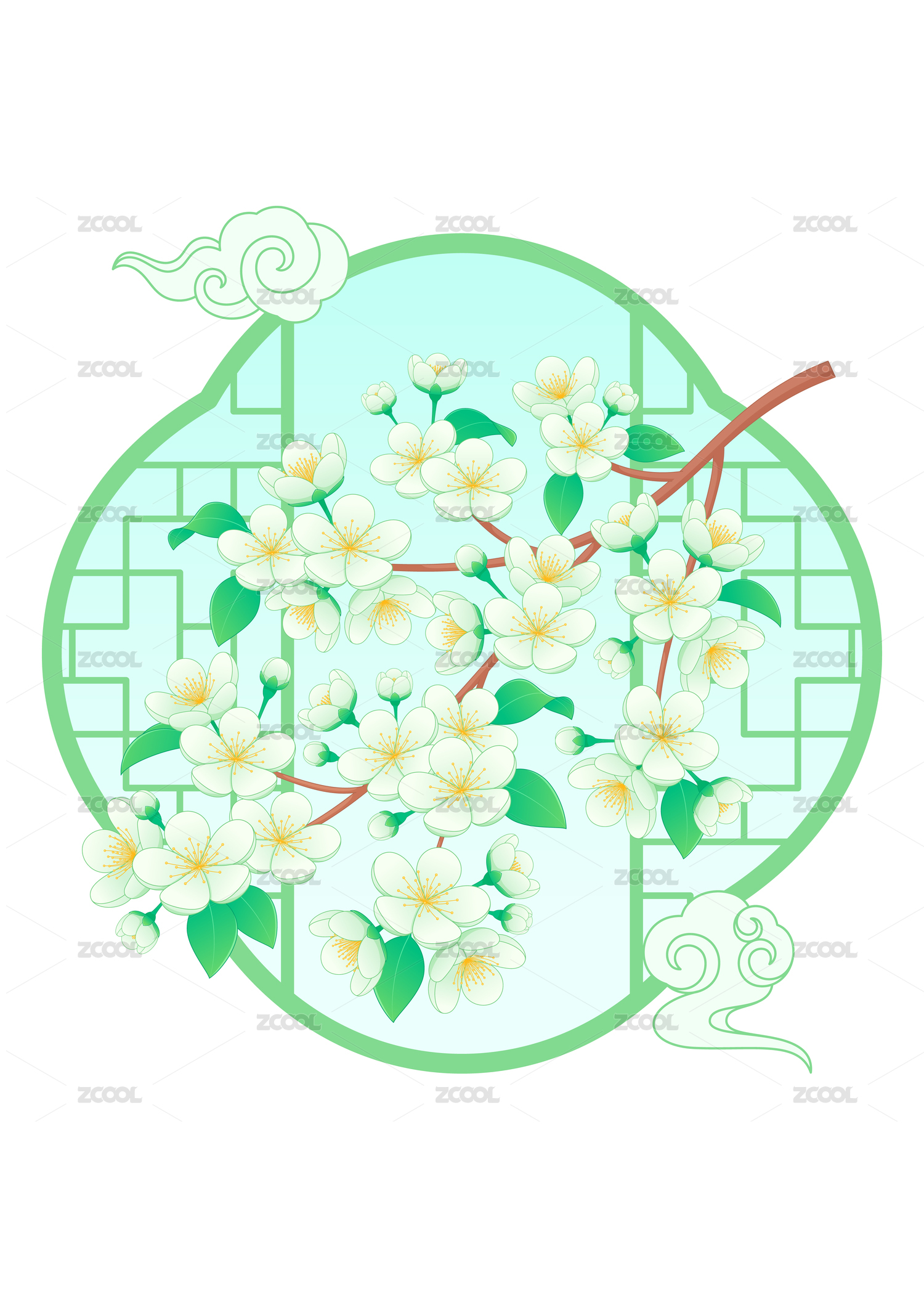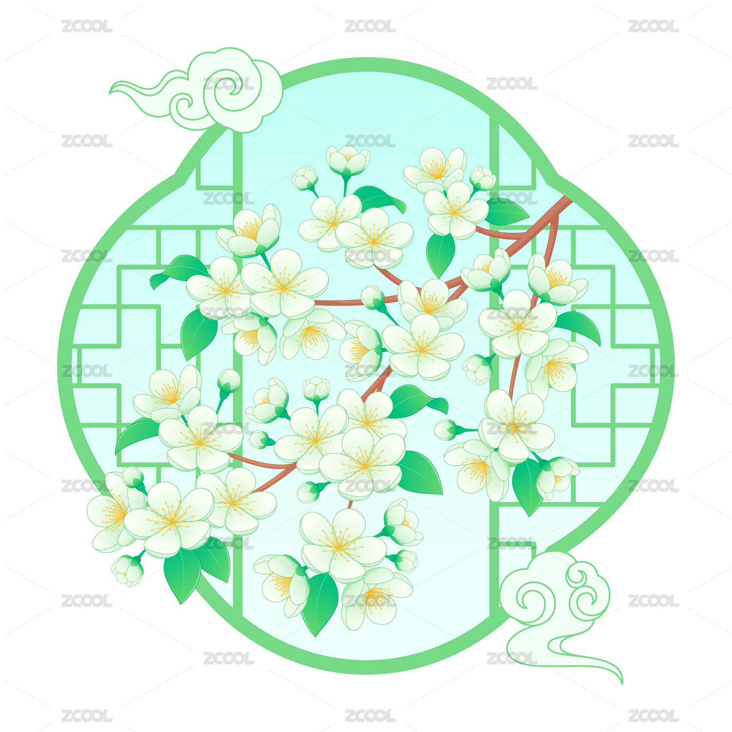 中國二十四節(jié)氣雨水花卉梨花國潮插畫