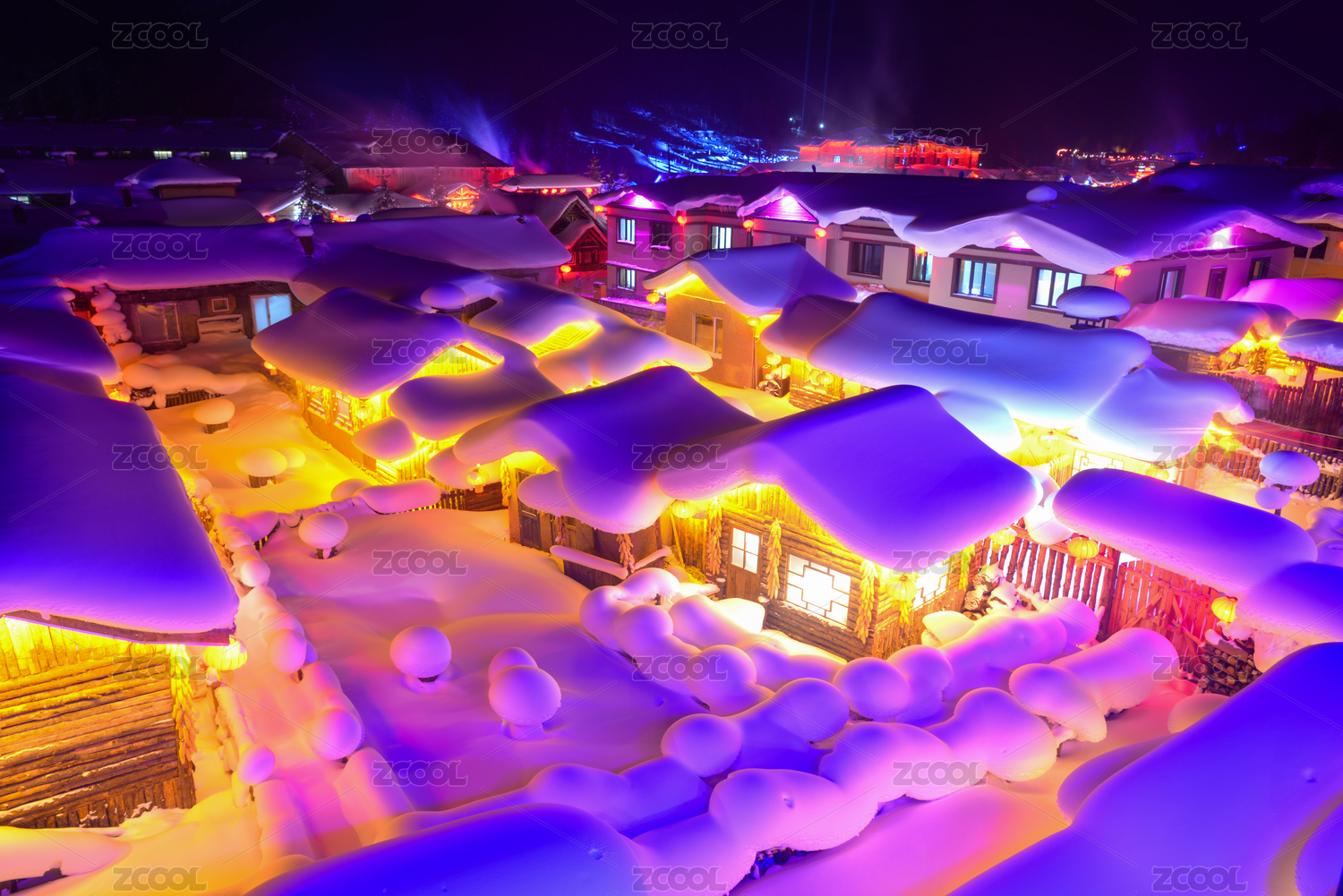 美麗黑龍江哈爾濱雪鄉(xiāng)蘑菇雪紅黃紫童話夜景