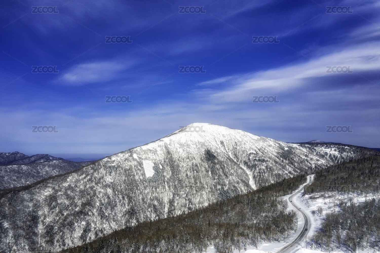 晴朗天氣陽(yáng)光下航拍中國(guó)東北亞布力公路雪景