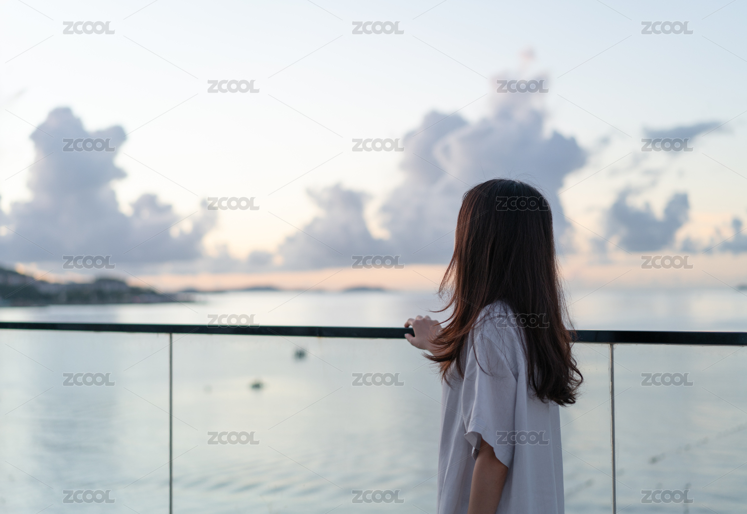 站在海邊露臺(tái)上女生的背影