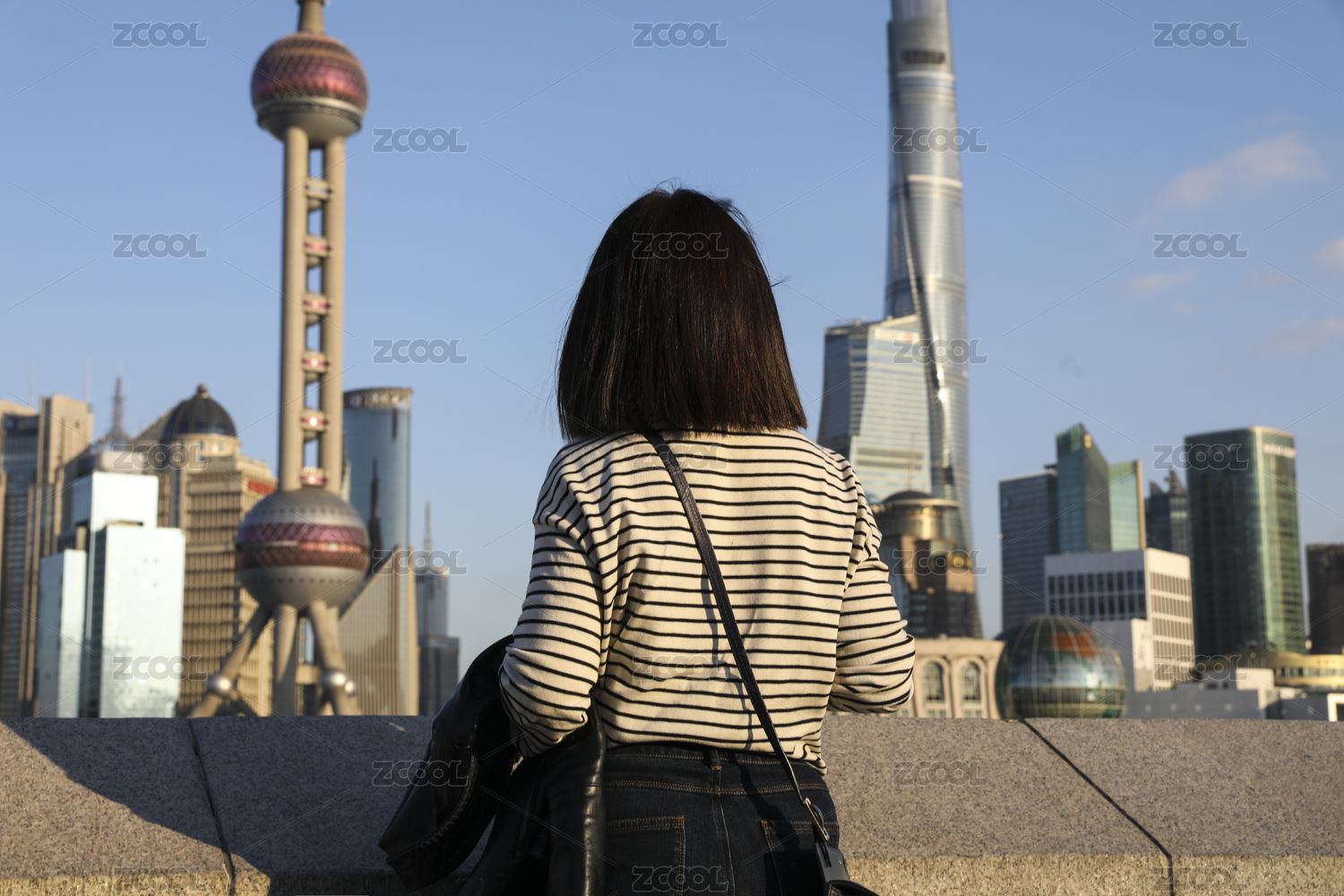 站在外灘江邊看風(fēng)景的女人背影