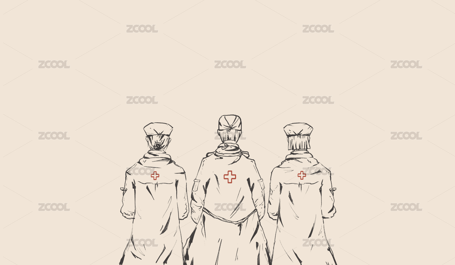 醫(yī)生和護(hù)士的背影線描插畫