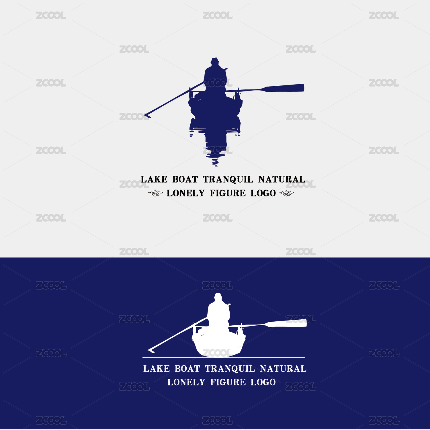 湖泊孤舟背影 剪影矢量標(biāo)志素材