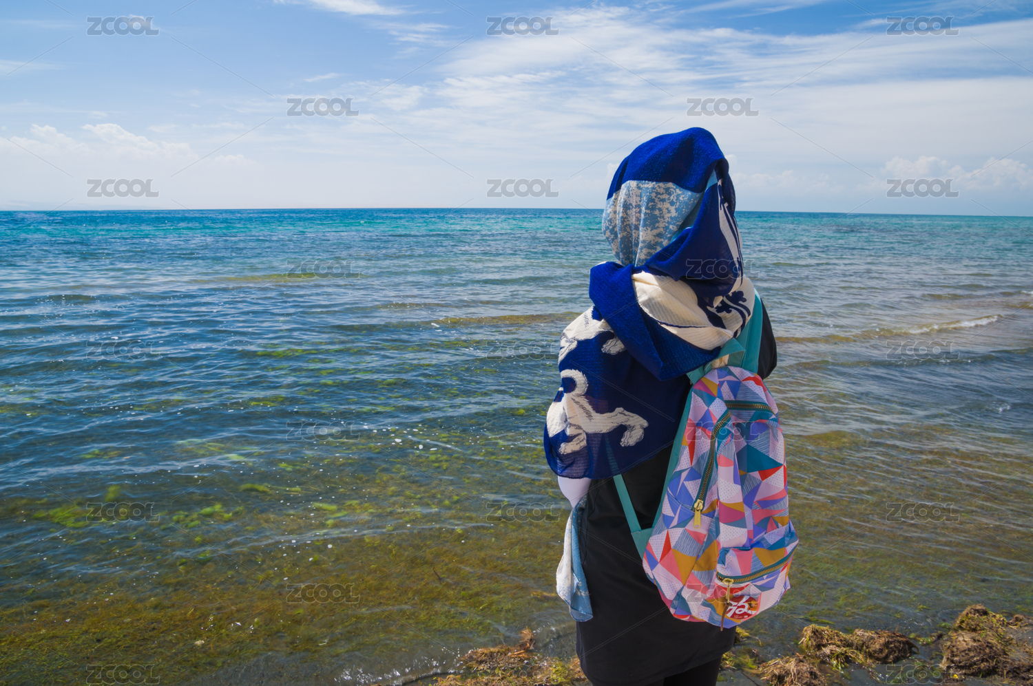 青海湖畔的女性背影