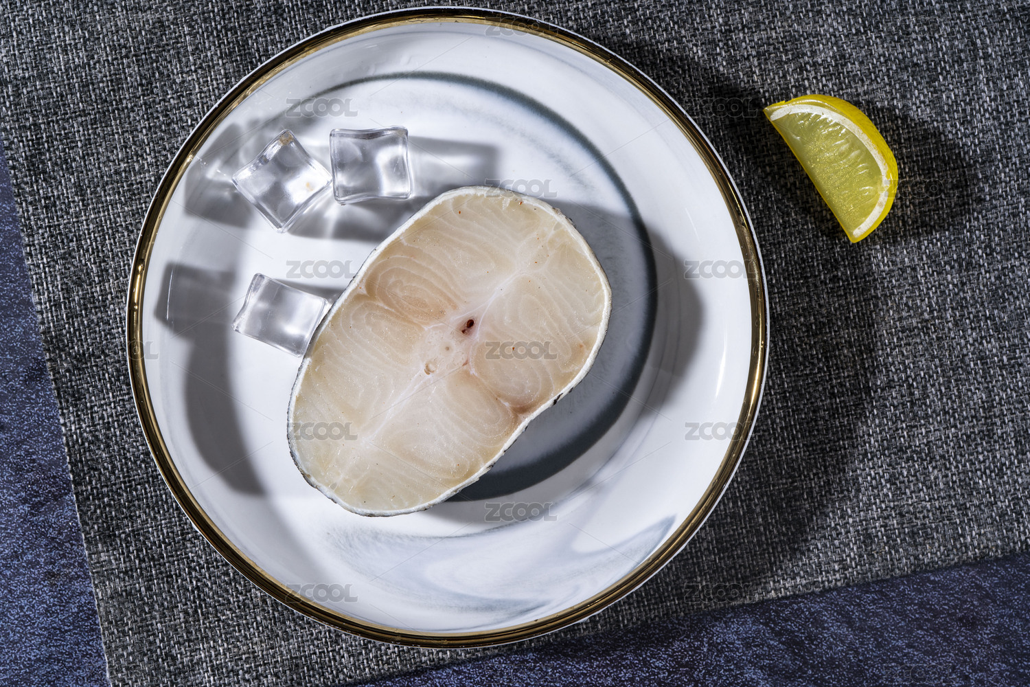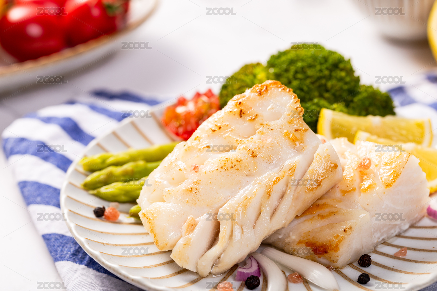 新鮮的生鱈魚(yú)塊擺放在白色的盤(pán)子里