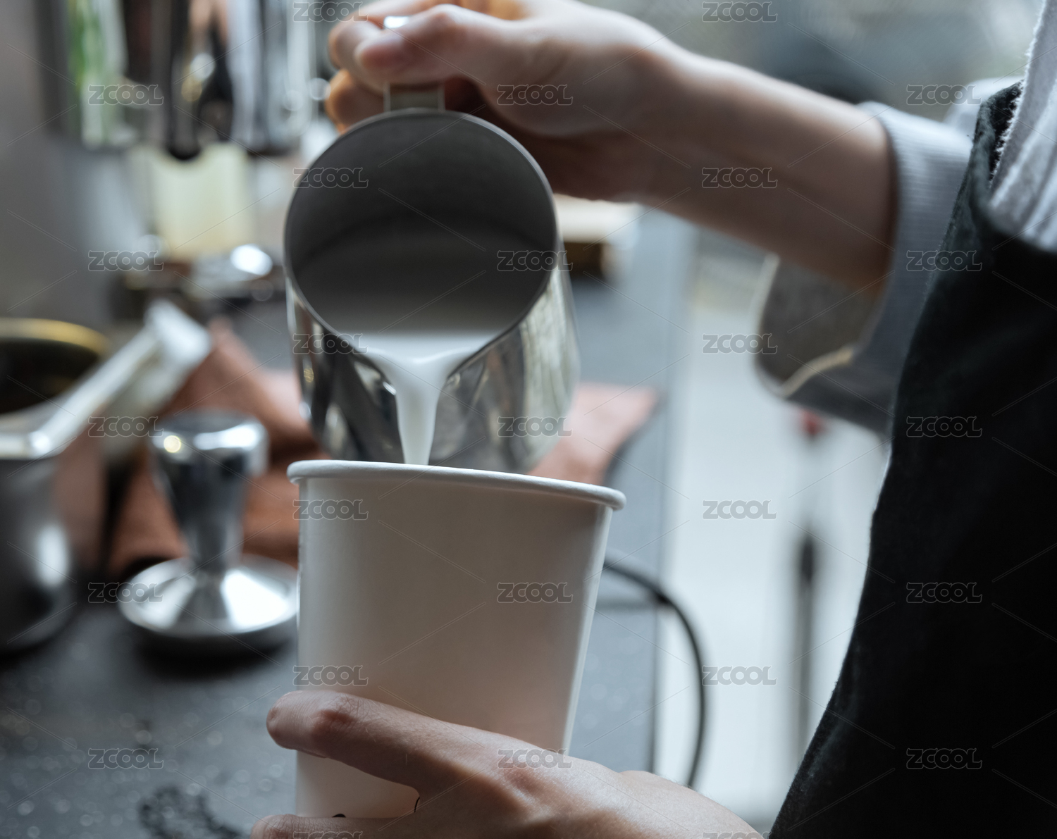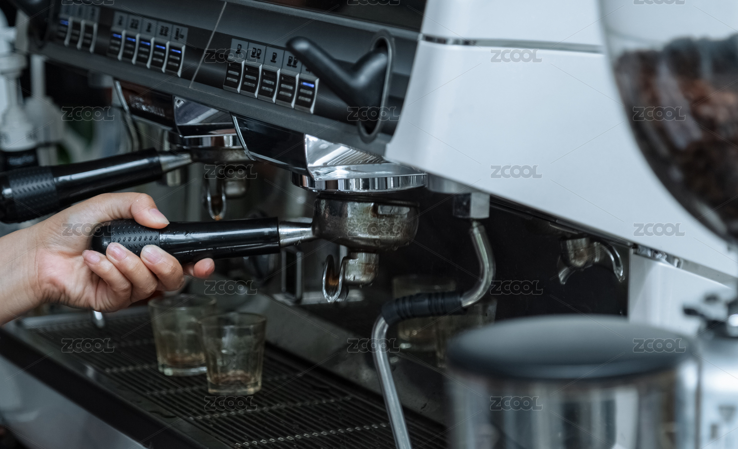 咖啡機(jī)操作臺(tái)制作咖啡流程的咖啡師