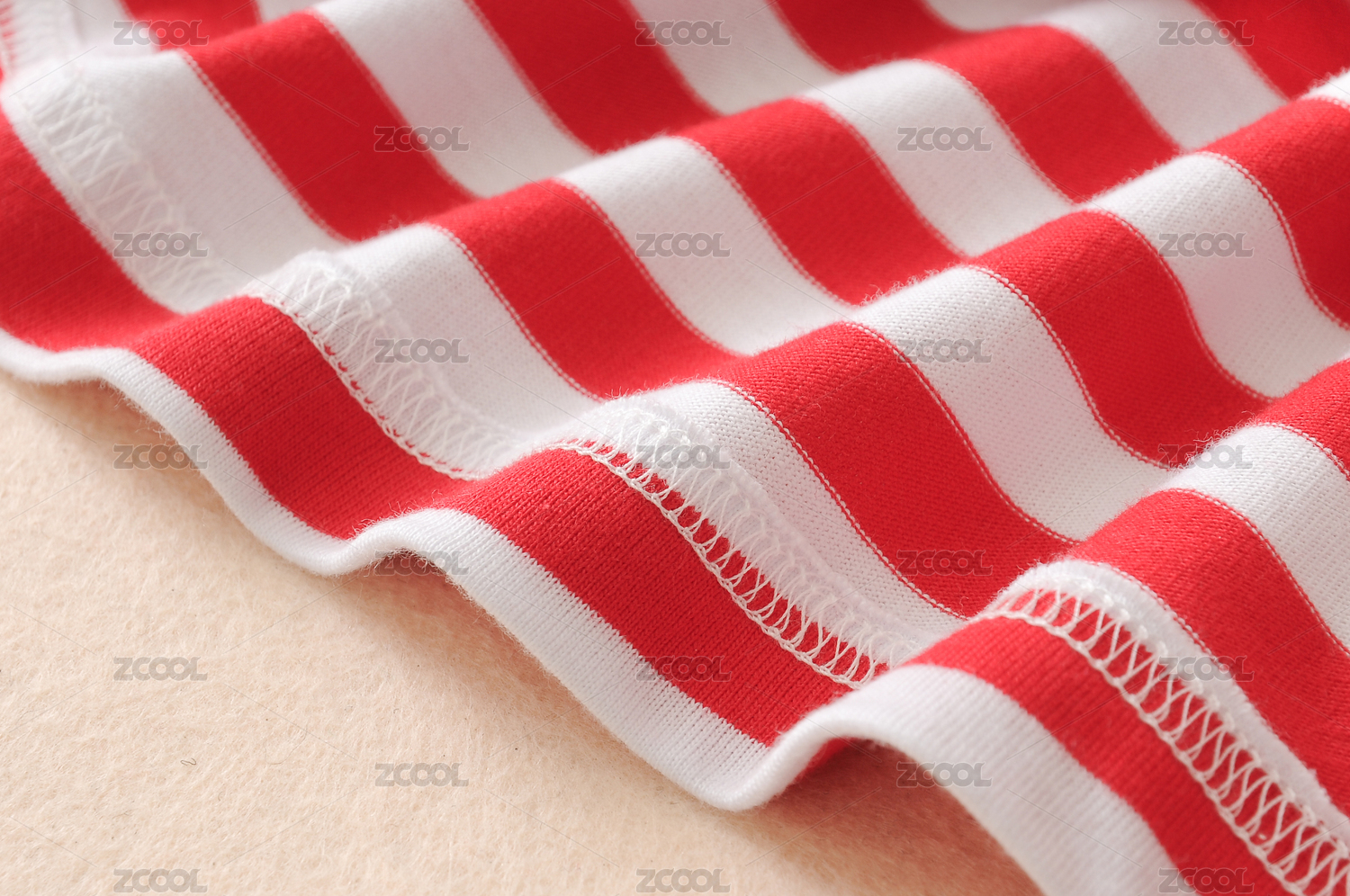 紅白條紋T恤面料及下擺收邊針腳細節(jié)特寫