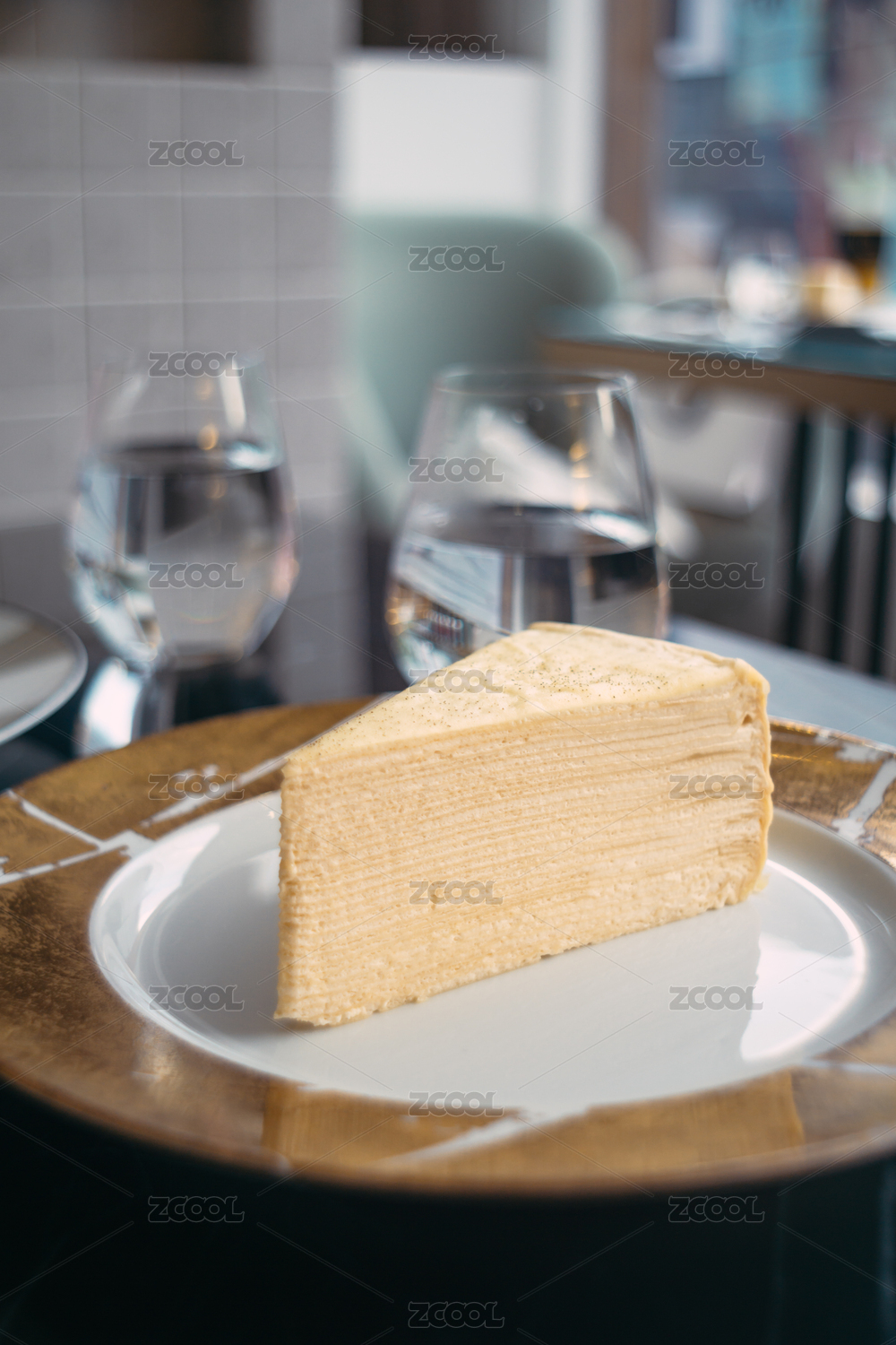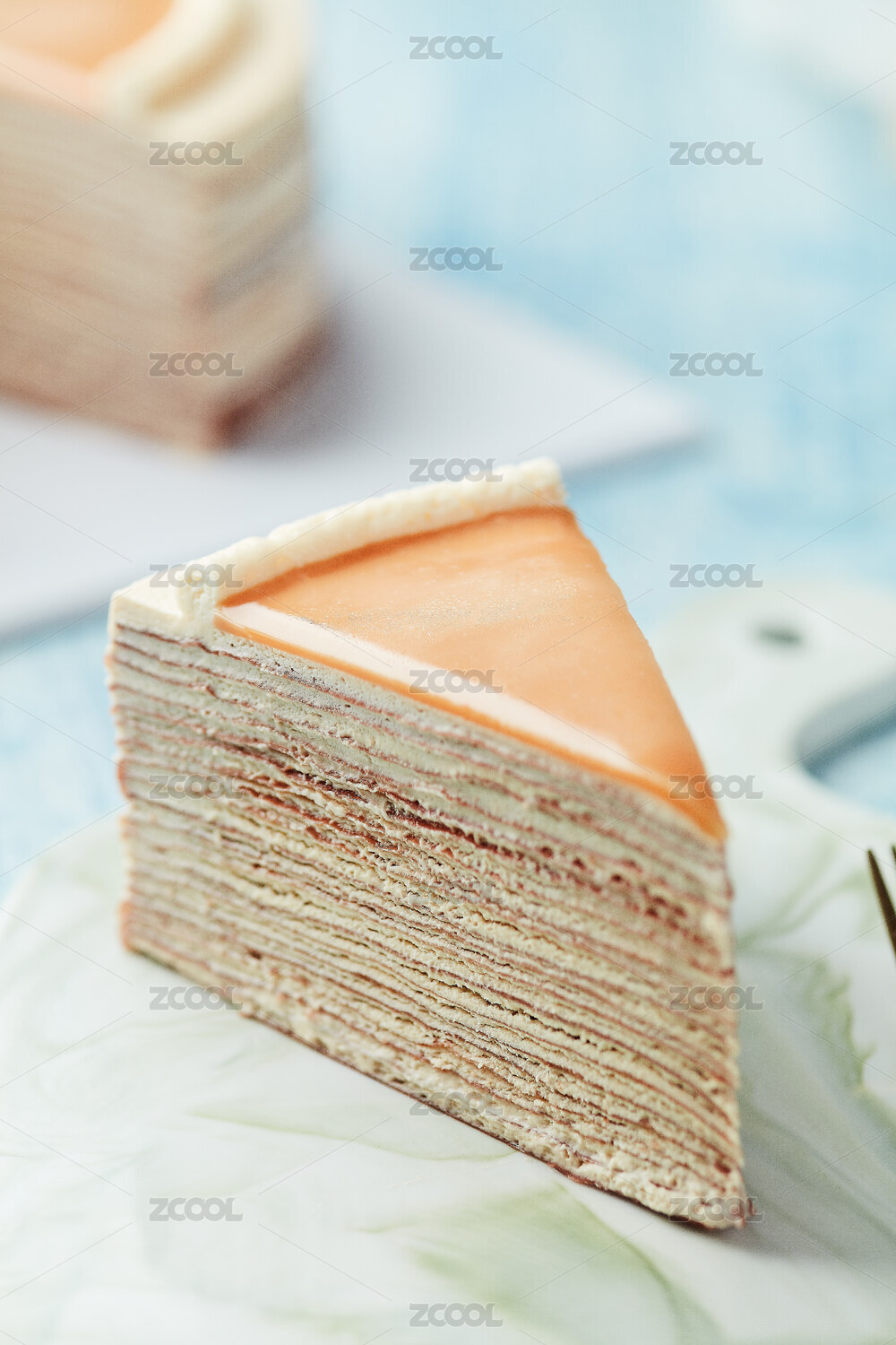 放在盤子上的精致千層蛋糕切片