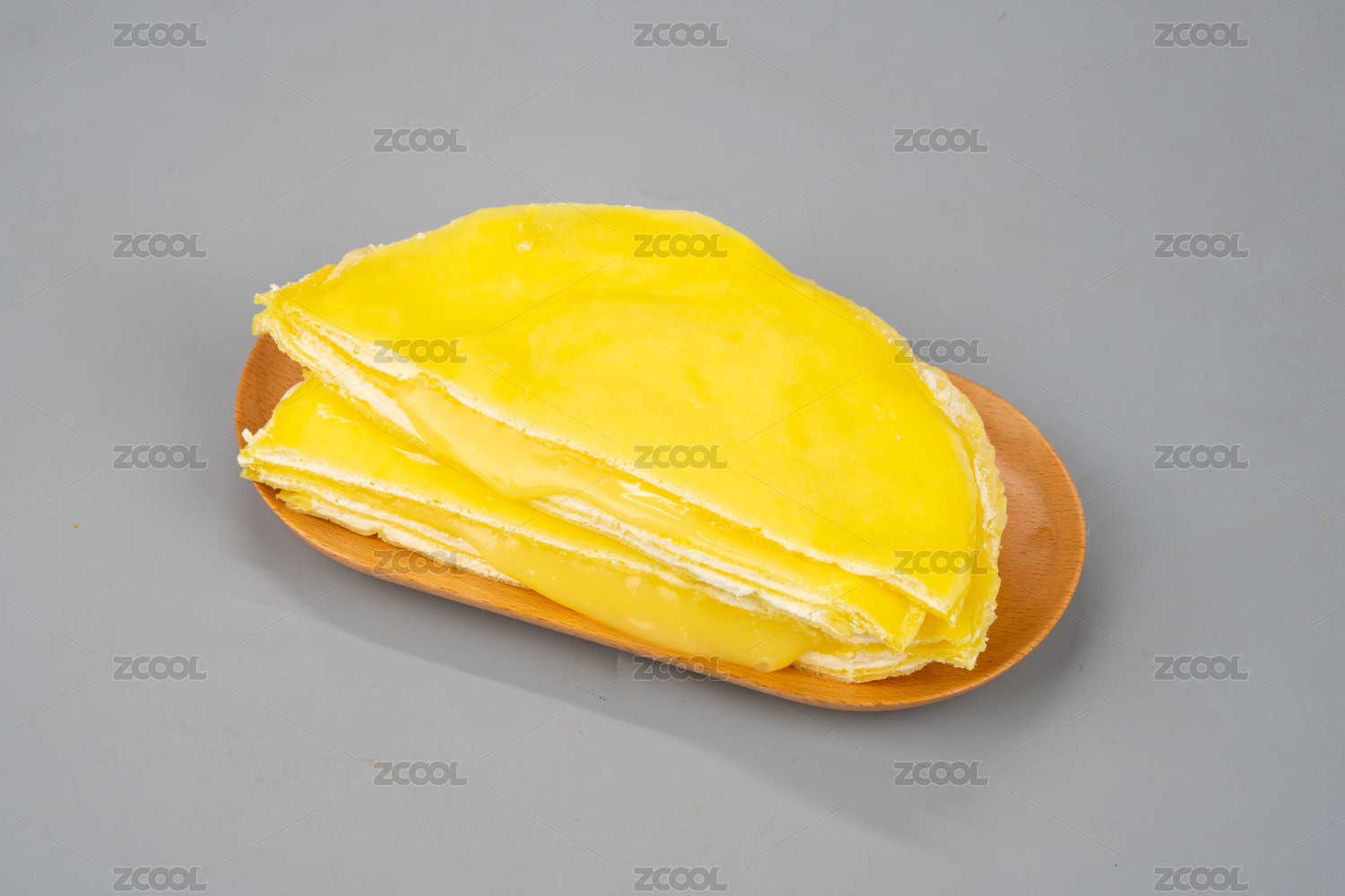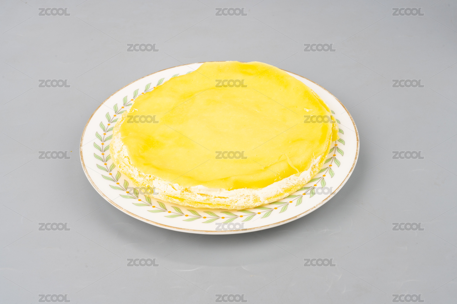 白背景上擺放的榴蓮千層蛋糕