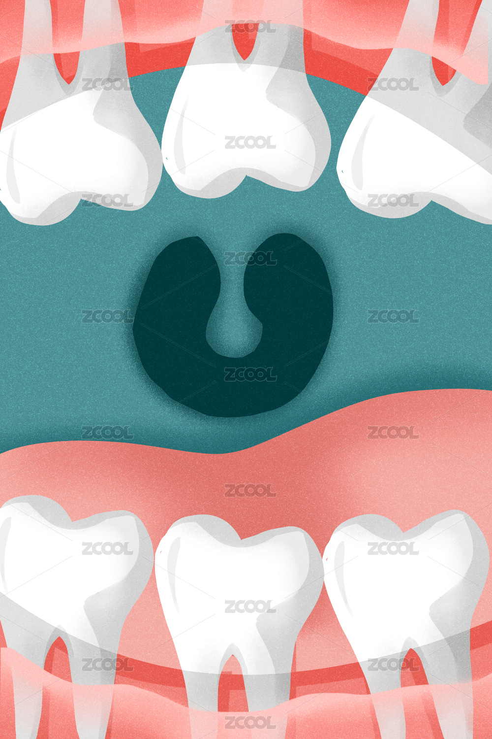扁平風(fēng)格口腔內(nèi)的牙齒插畫背景
