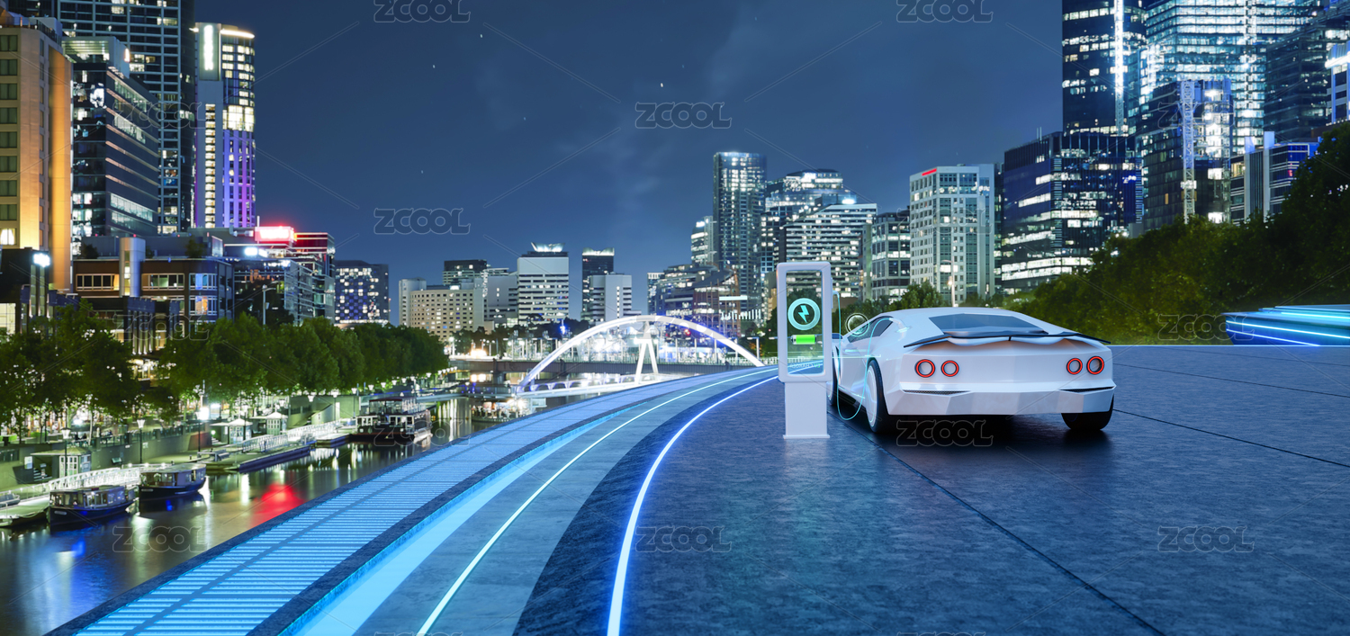 科技藍(lán)白充電站充電樁3D智能汽車圖標(biāo)