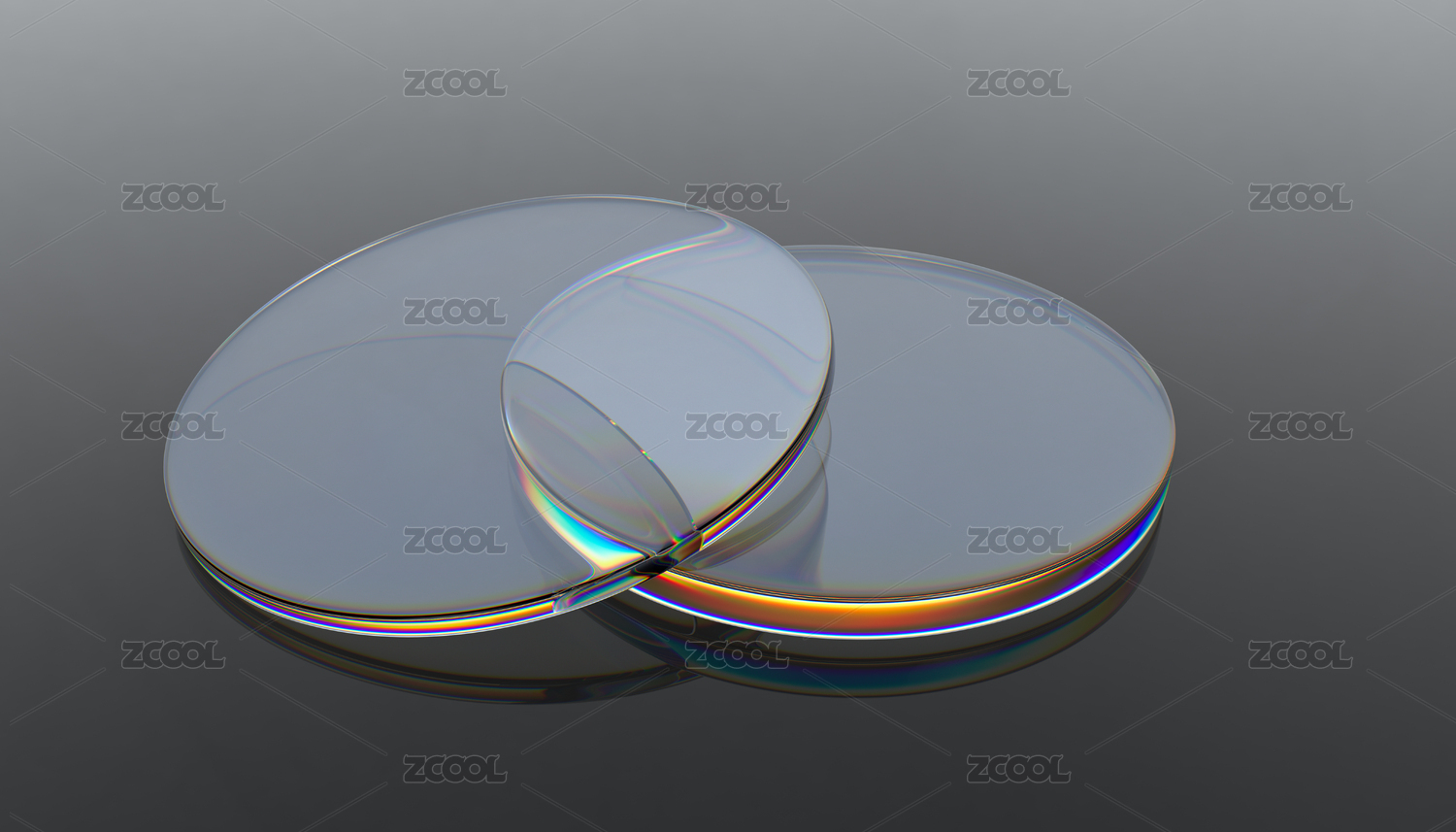 三維渲染純色背景下強(qiáng)烈玻璃質(zhì)感的鏡片