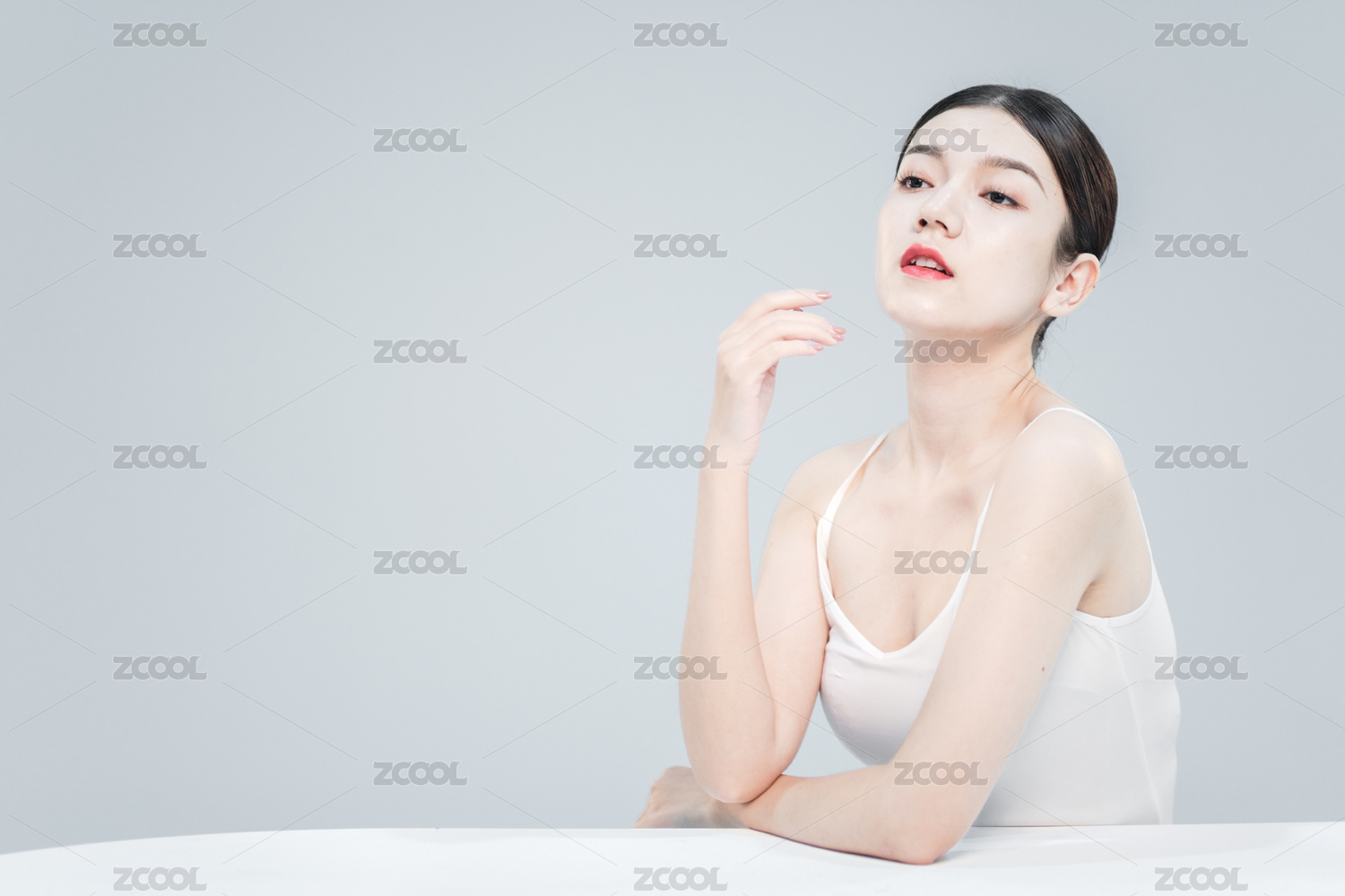 純色背景前的年輕亞洲女性美容