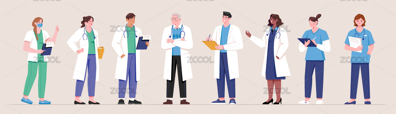 一組醫(yī)生角色集合扁平矢量插畫純色背景