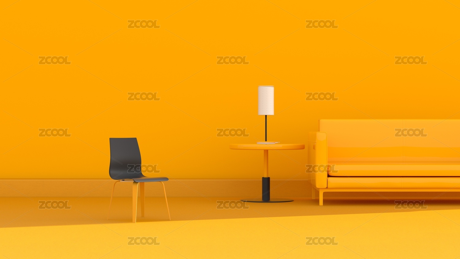 3D渲染簡約純色室內(nèi)家居場景
