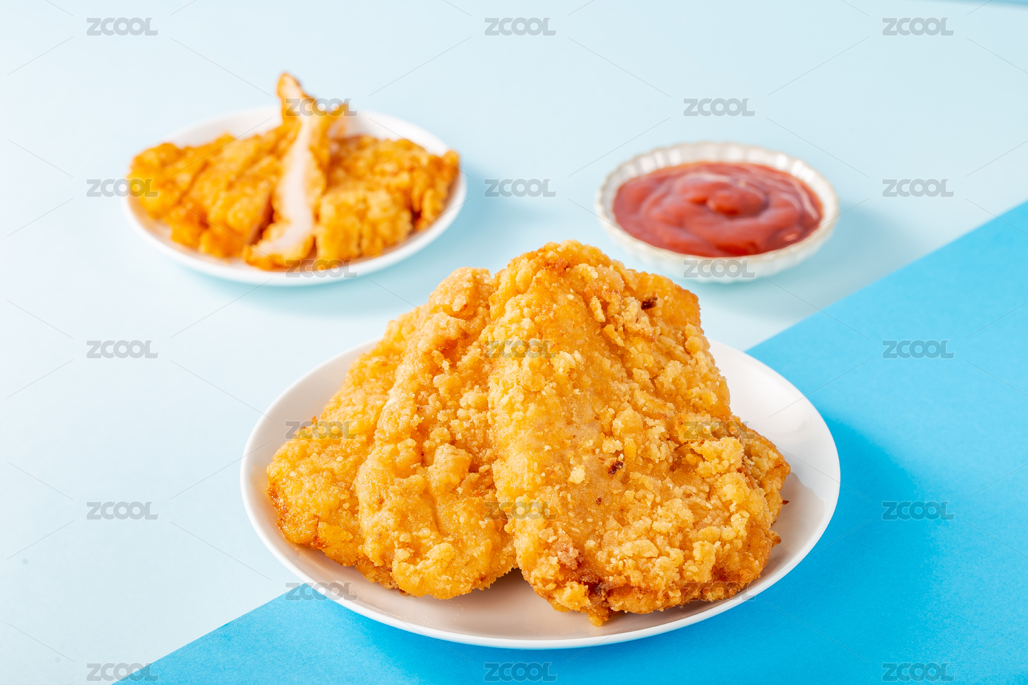純色背景上滿滿一盤油炸雞排