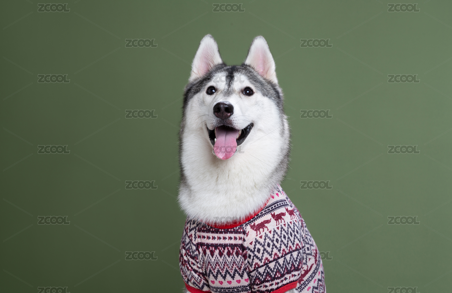 純色背景面帶笑容的哈士奇特寫