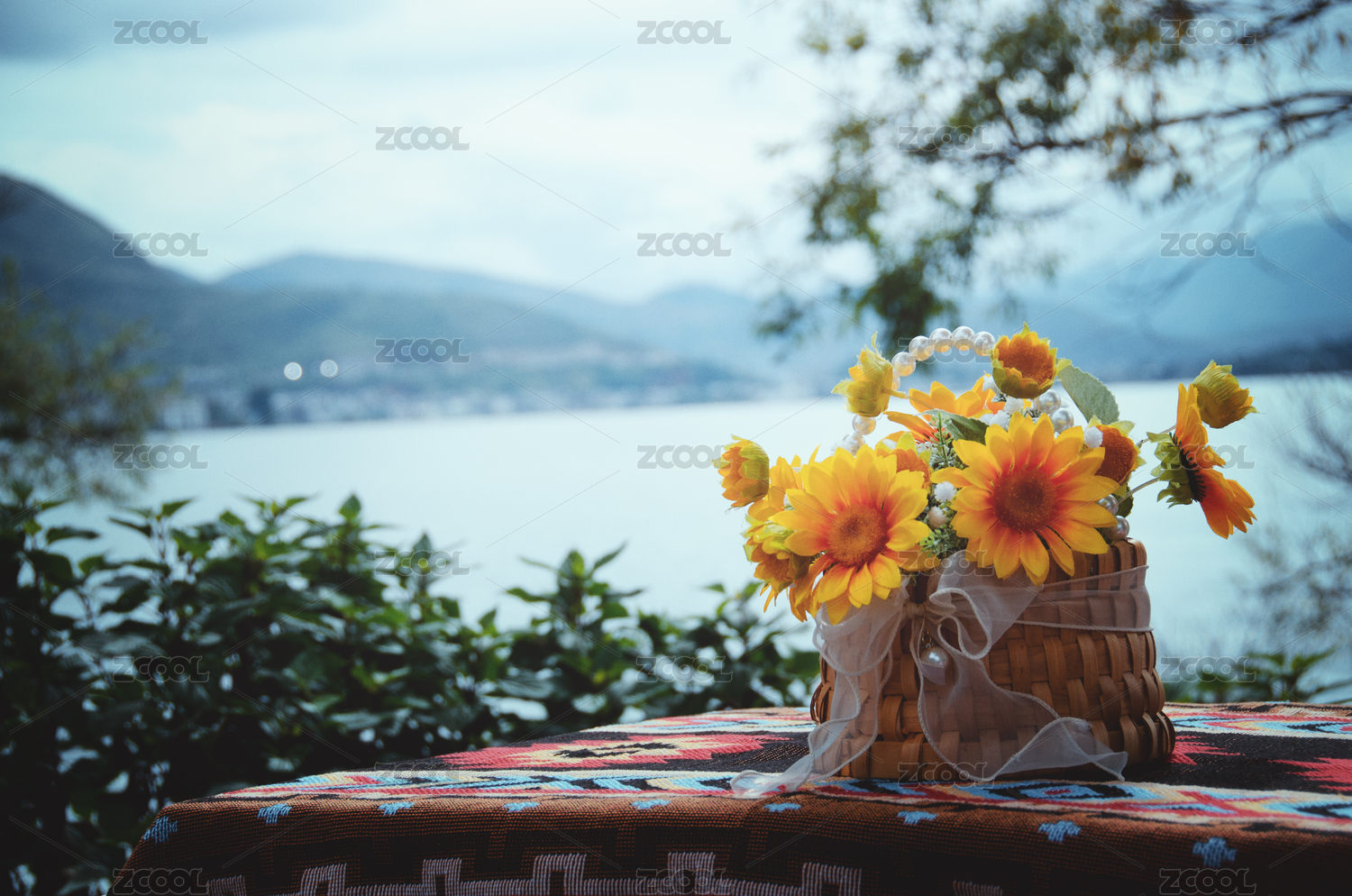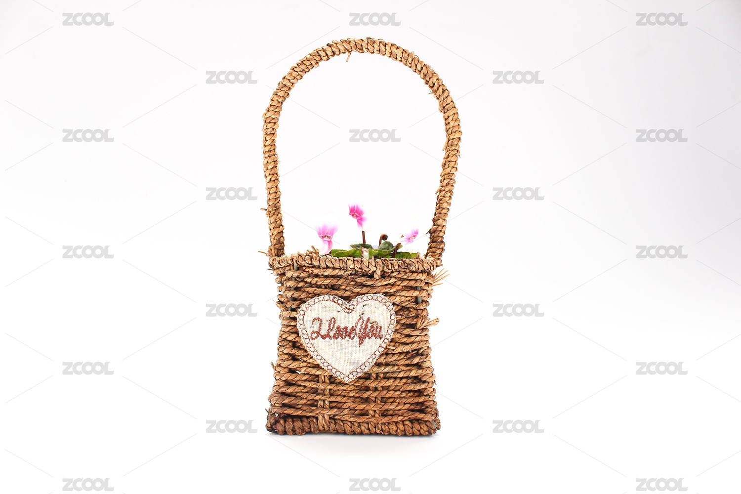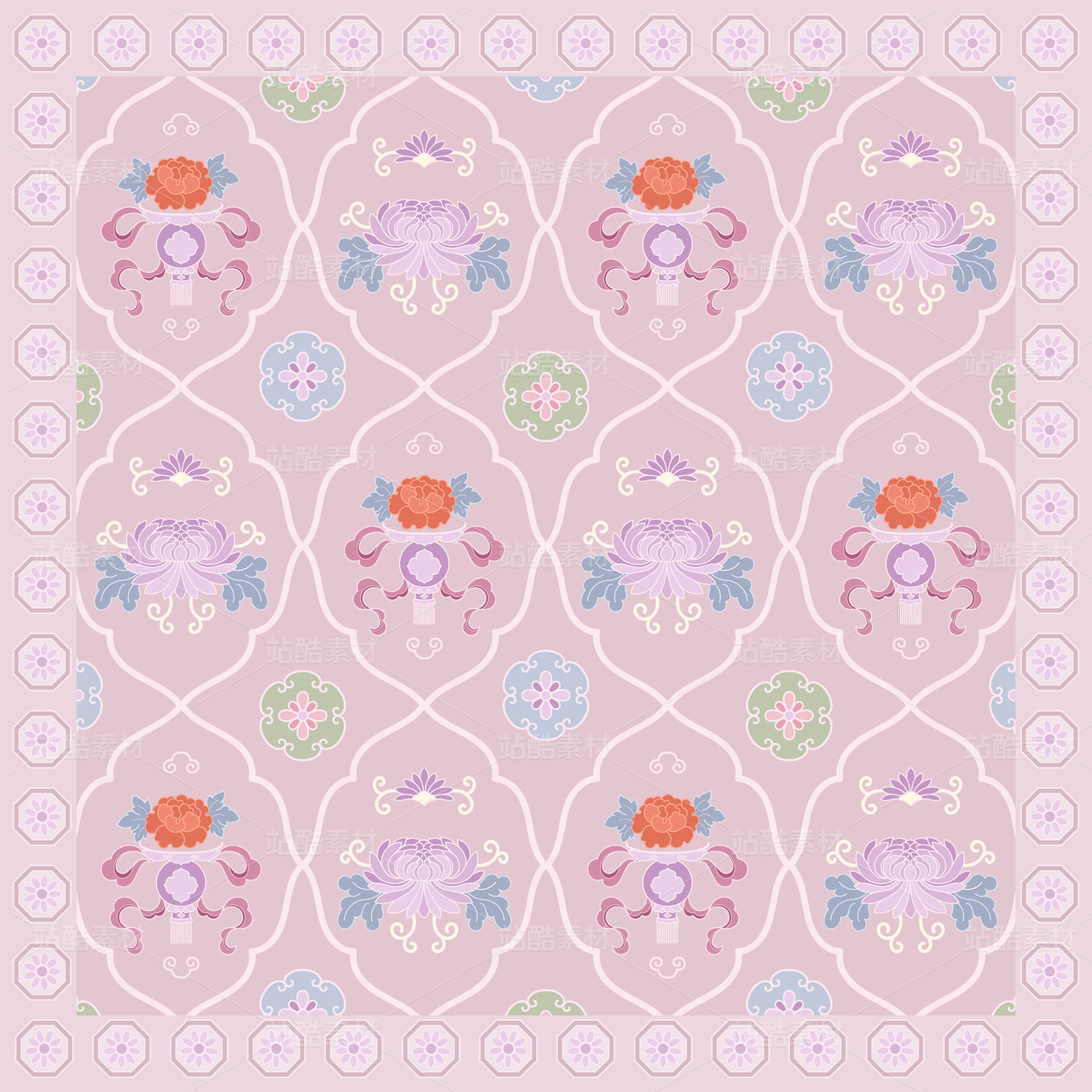 藕荷色花籃牡丹菊花網(wǎng)格中國紋樣插畫
