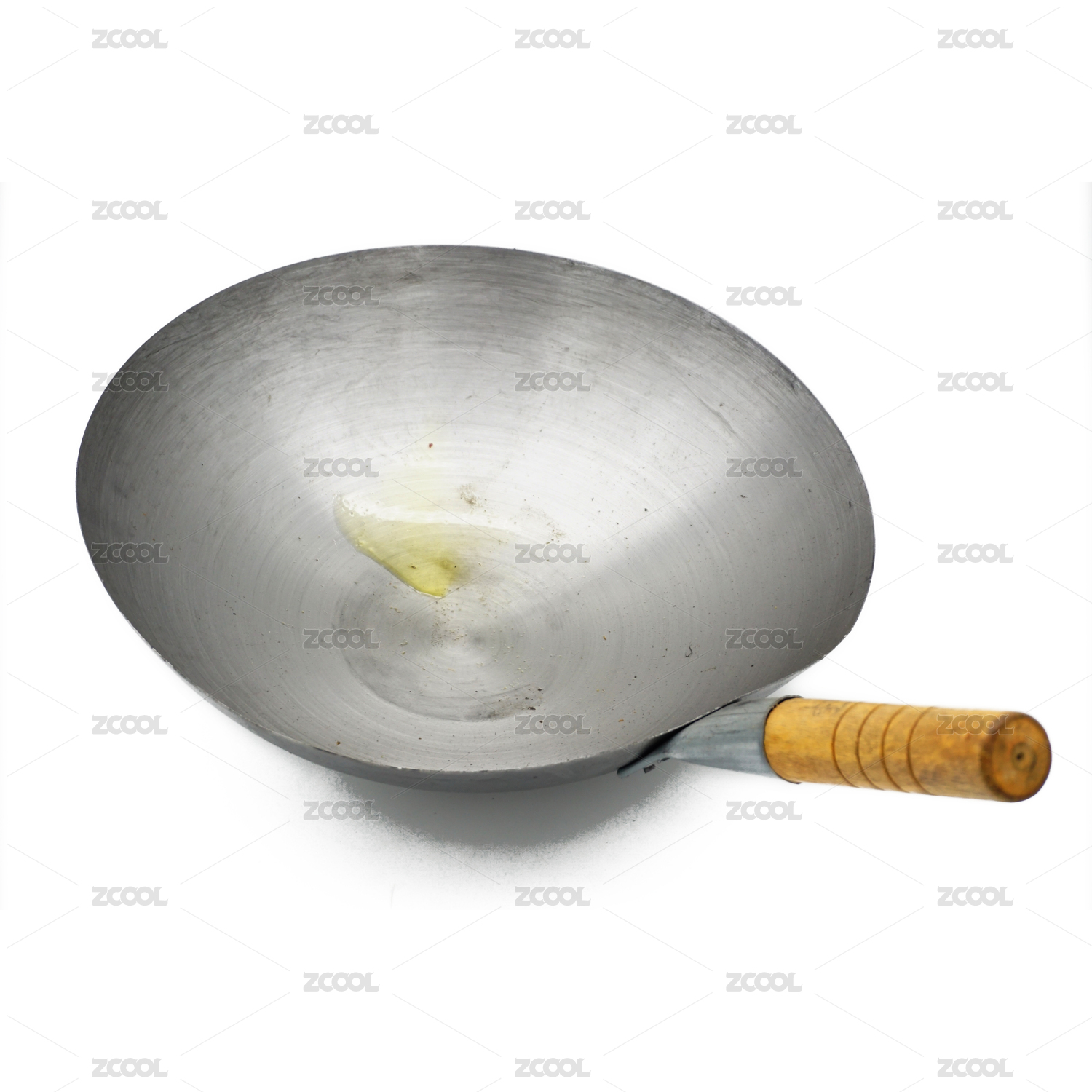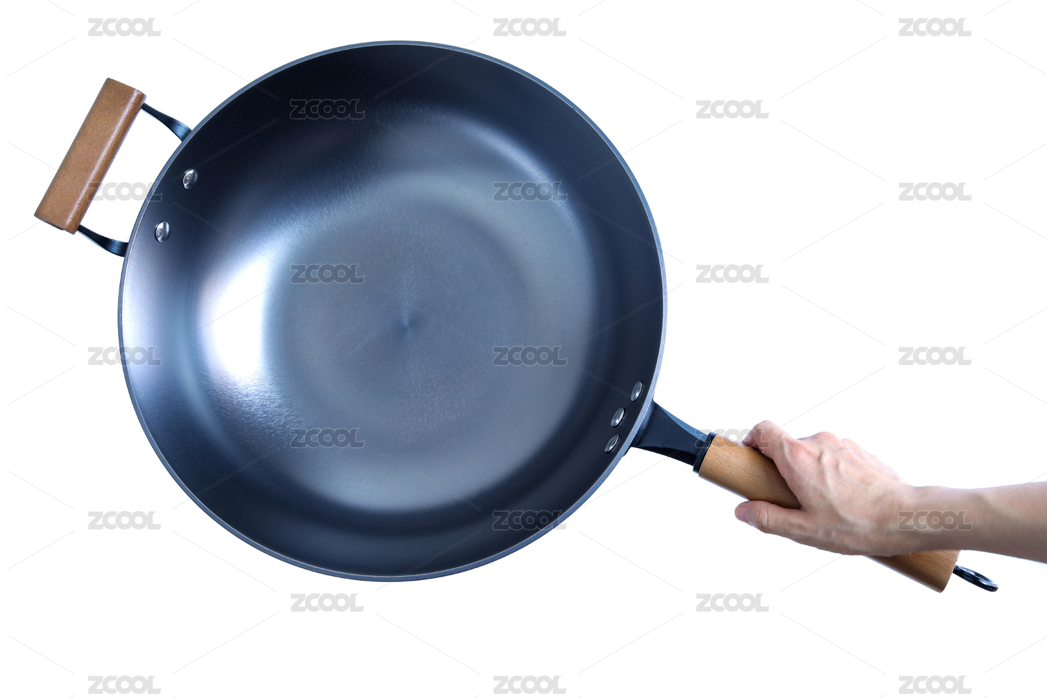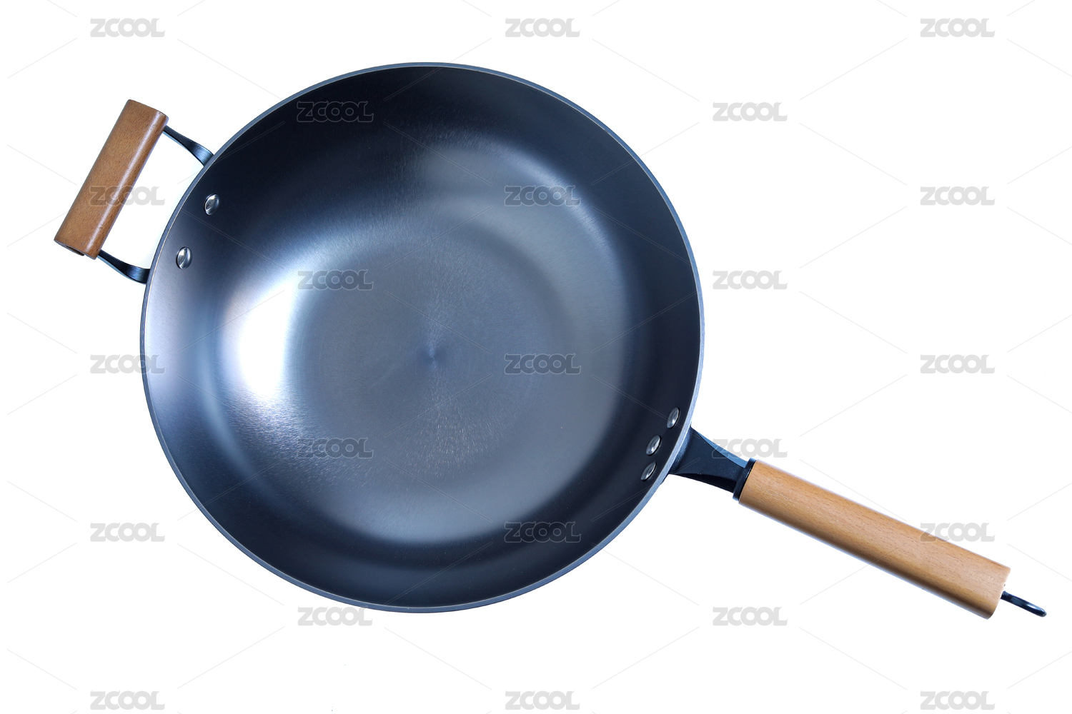 家庭廚房專用的鐵炒鍋特寫白色背景底圖