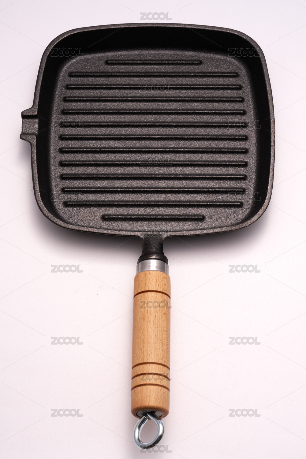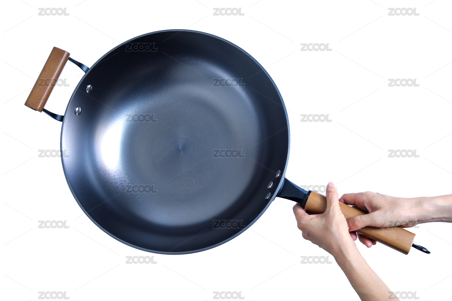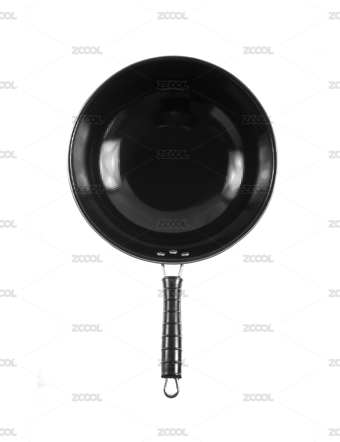 家庭廚房專用的鐵炒鍋特寫白色背景底圖