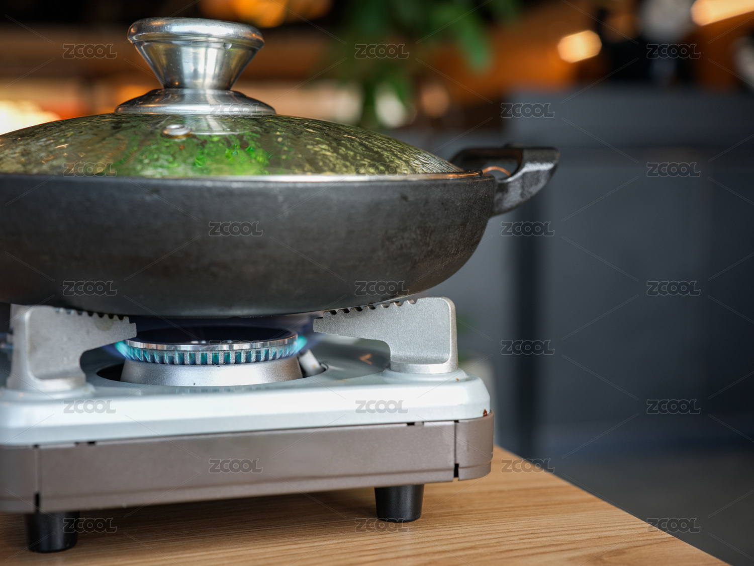 家庭廚房專用的鐵炒鍋邊緣特寫