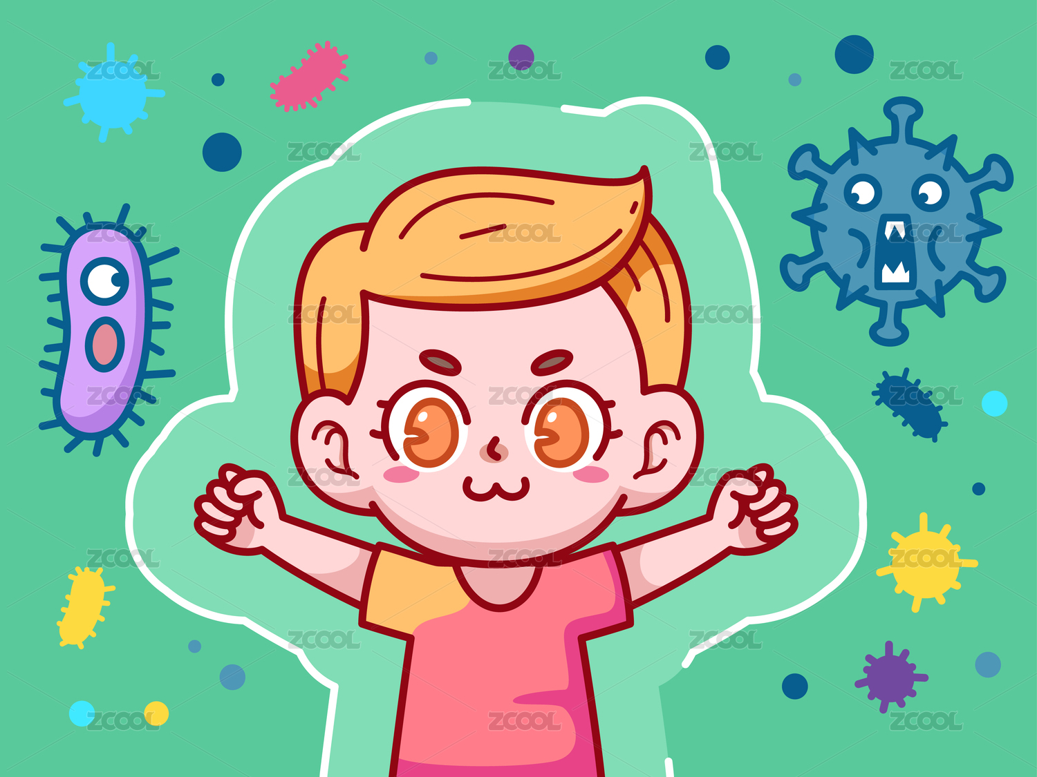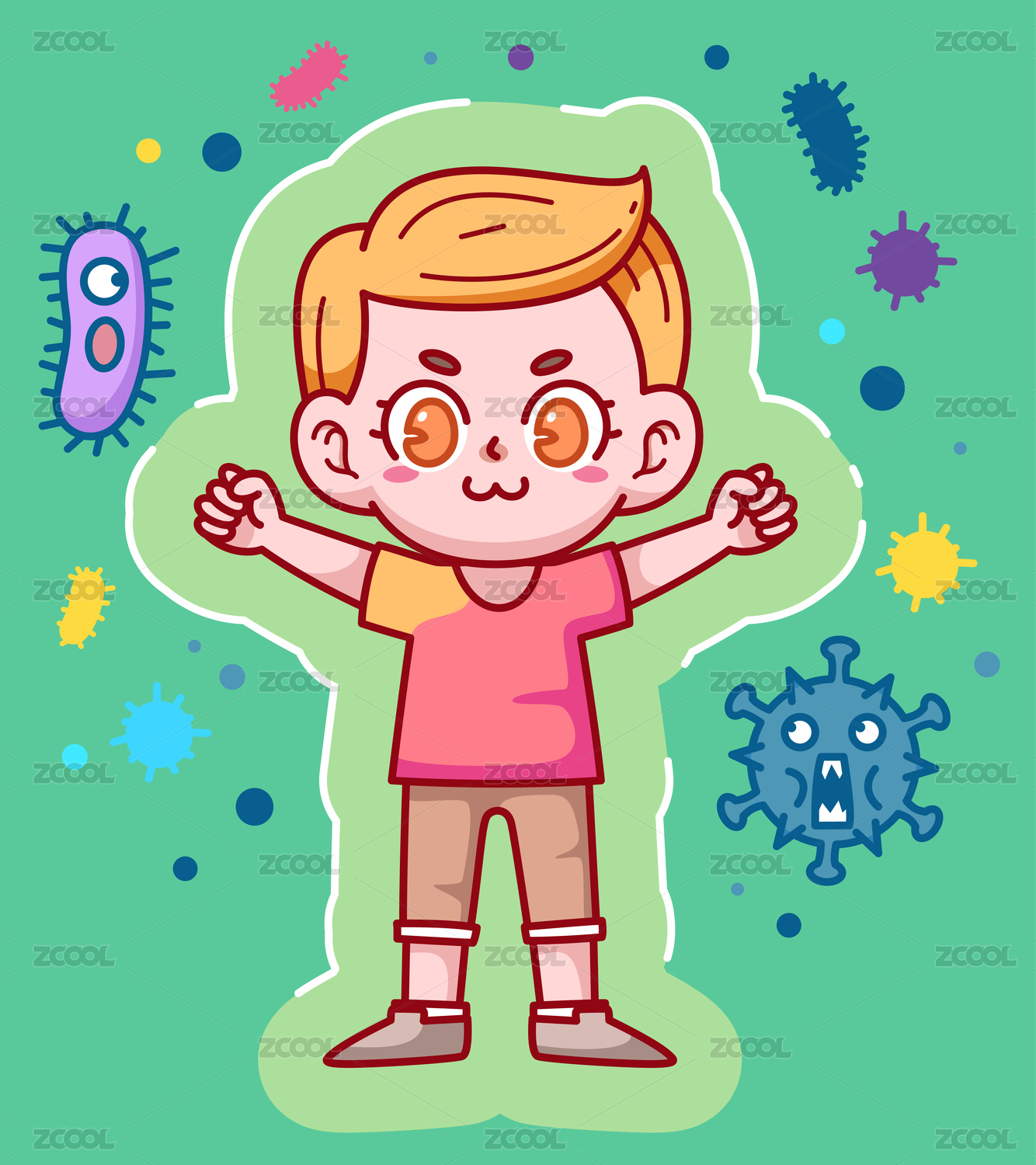 小男孩與病毒做斗爭矢量扁平插畫