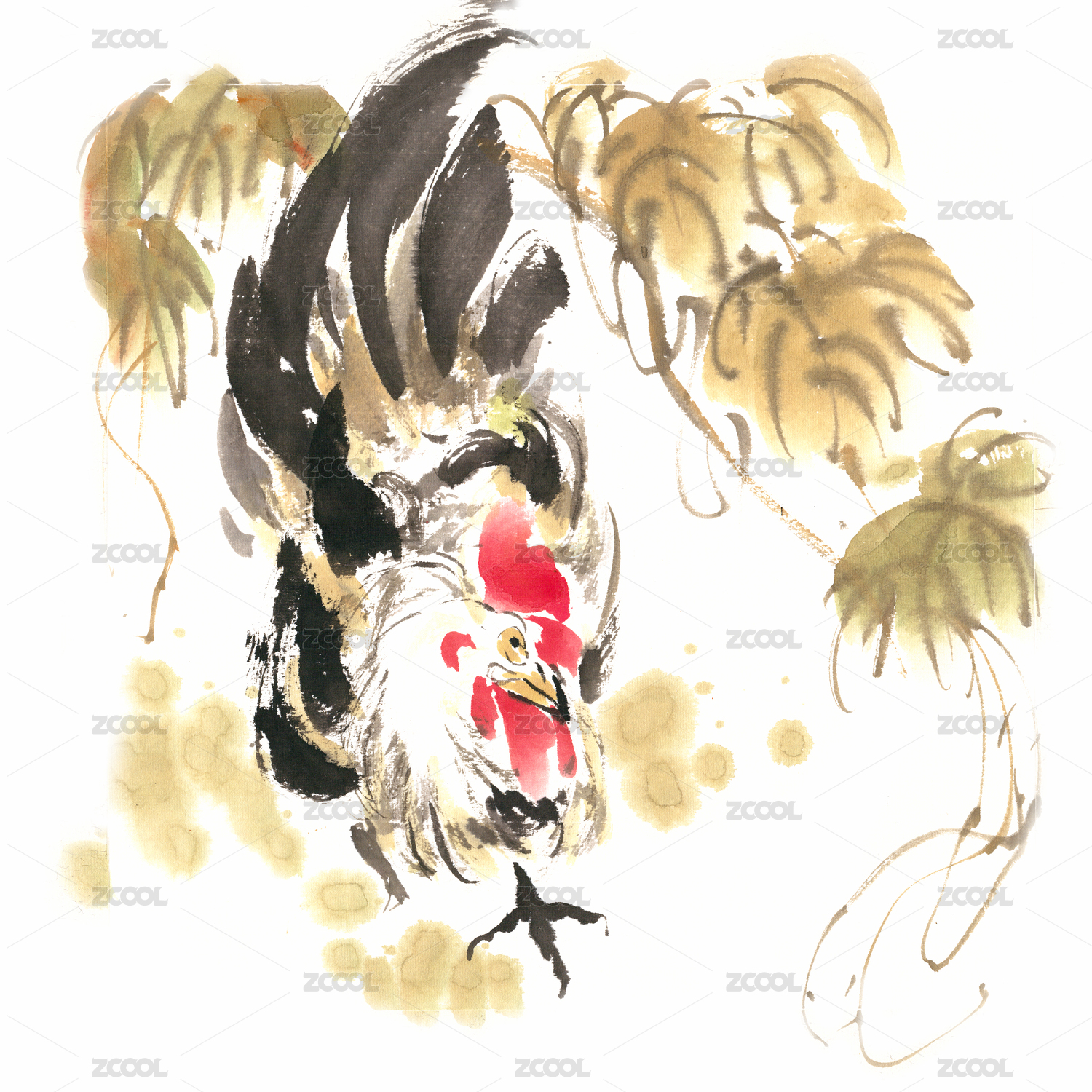 紅冠金羽的雄雞