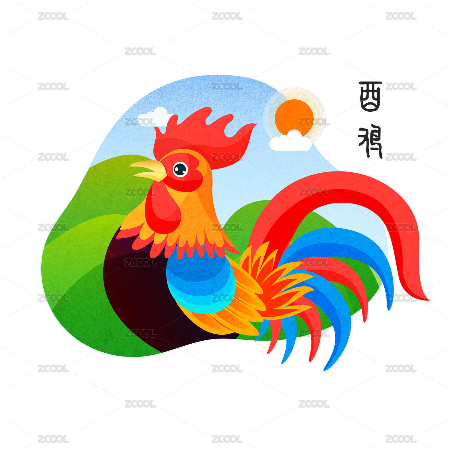 卡通雄雞報(bào)曉圖案