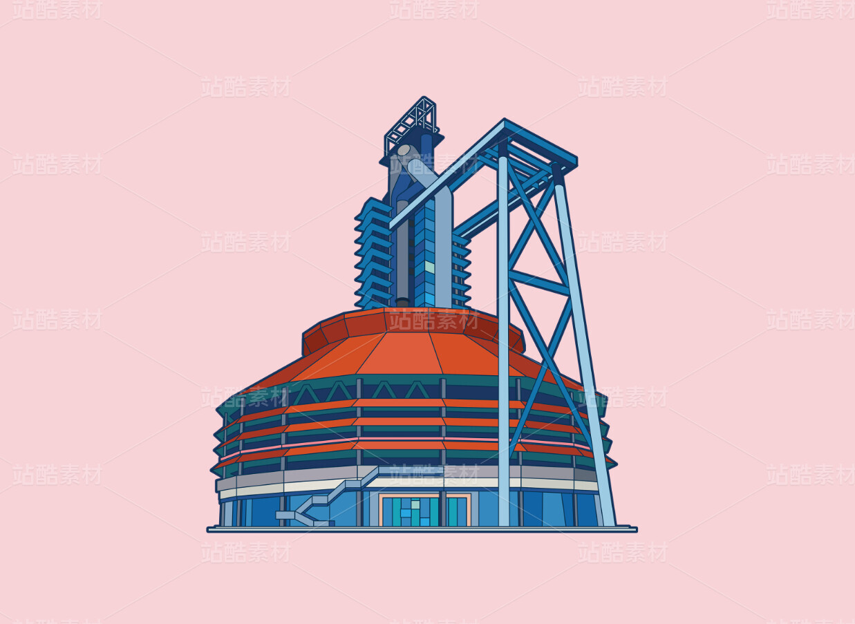 首鋼園高爐插畫北京地標(biāo)建筑服貿(mào)會(huì)會(huì)址PNG免摳高清圖