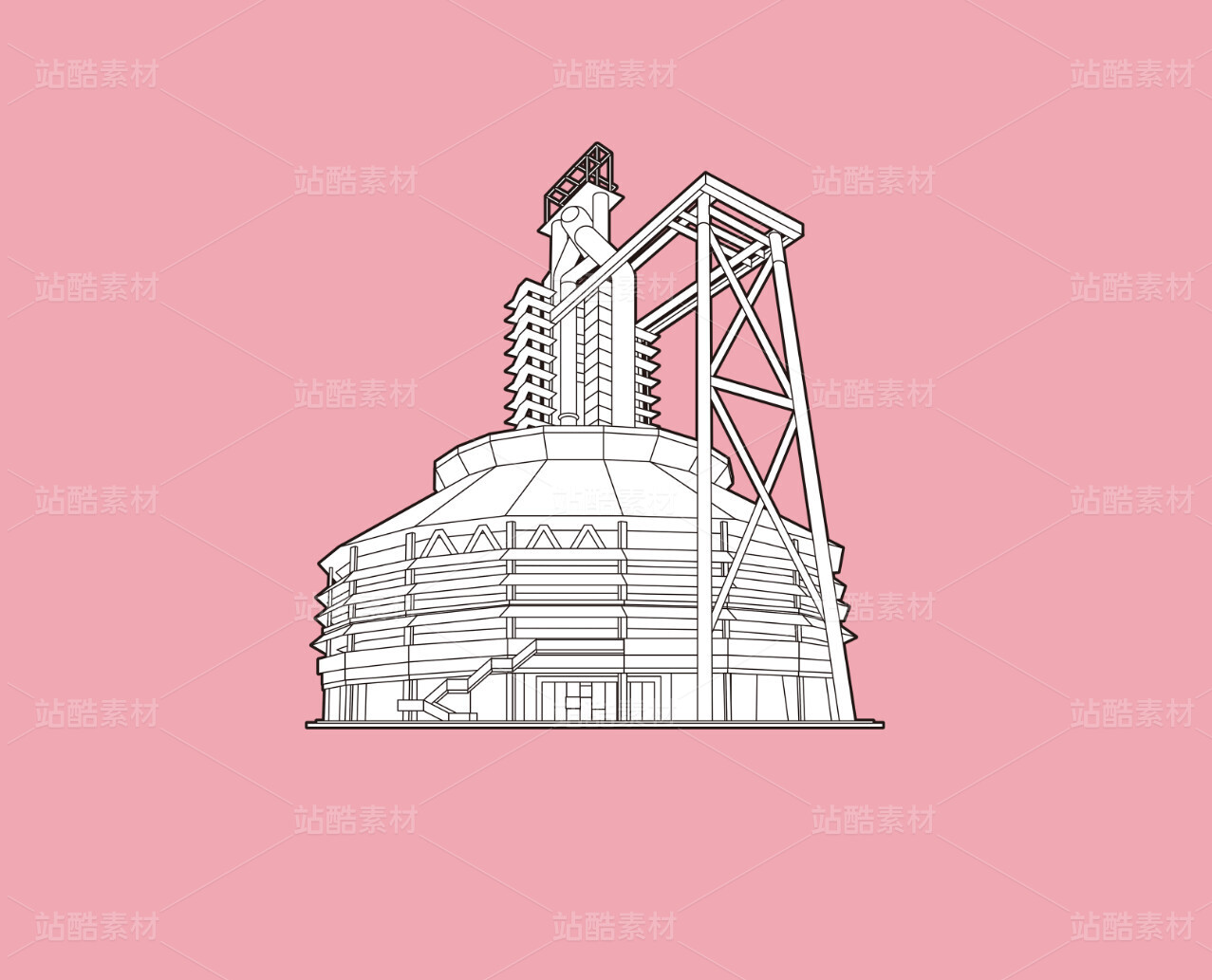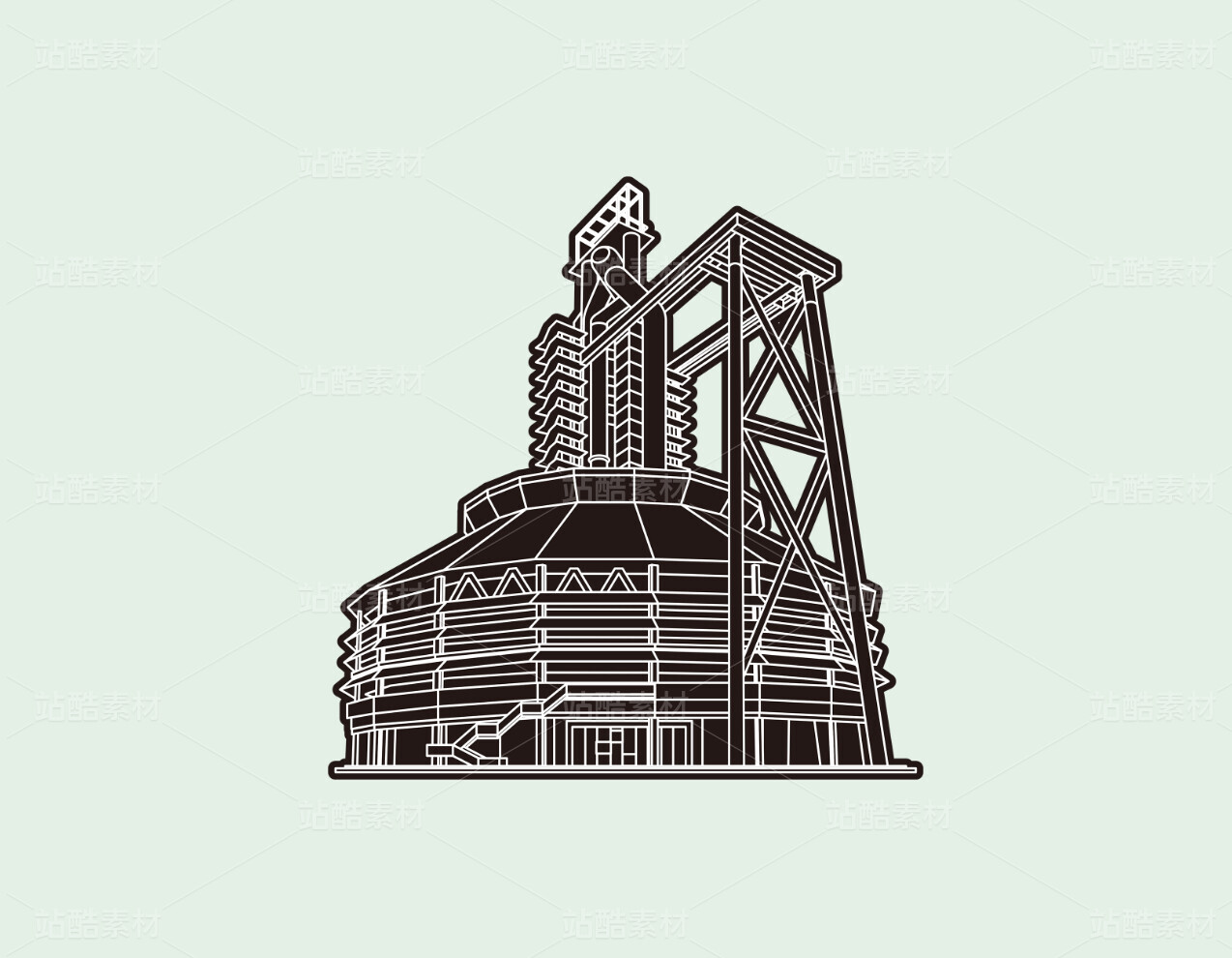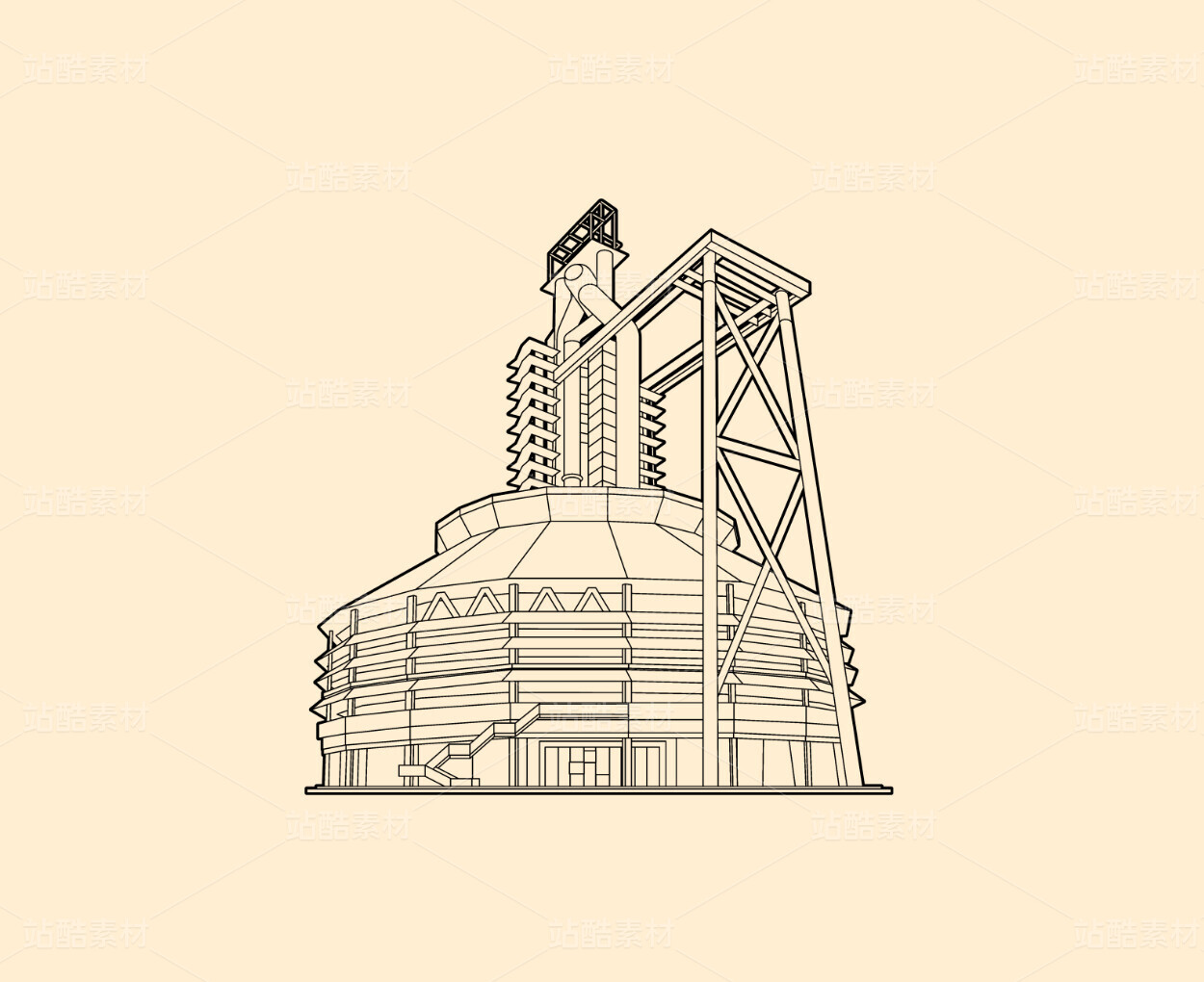 首鋼園高爐線稿插畫北京地標(biāo)建筑服貿(mào)會(huì)會(huì)址PNG免摳圖