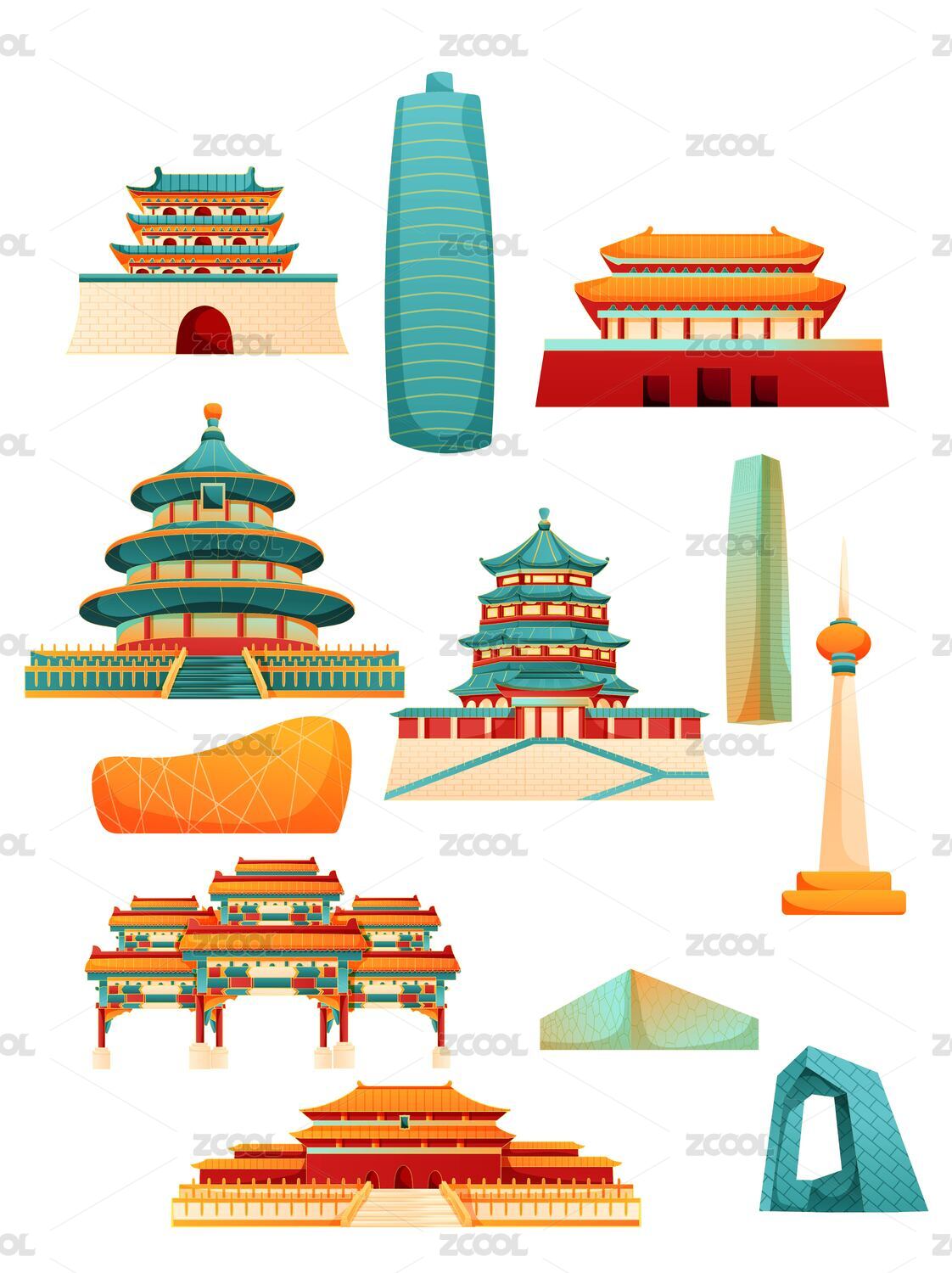 國潮風(fēng)北京地標(biāo)建筑貼紙