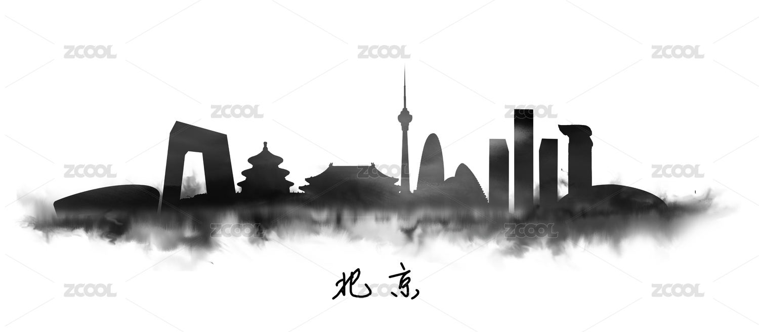 新中式中秋國慶節(jié)北京地標(biāo)光暈剪影海報(bào)模板