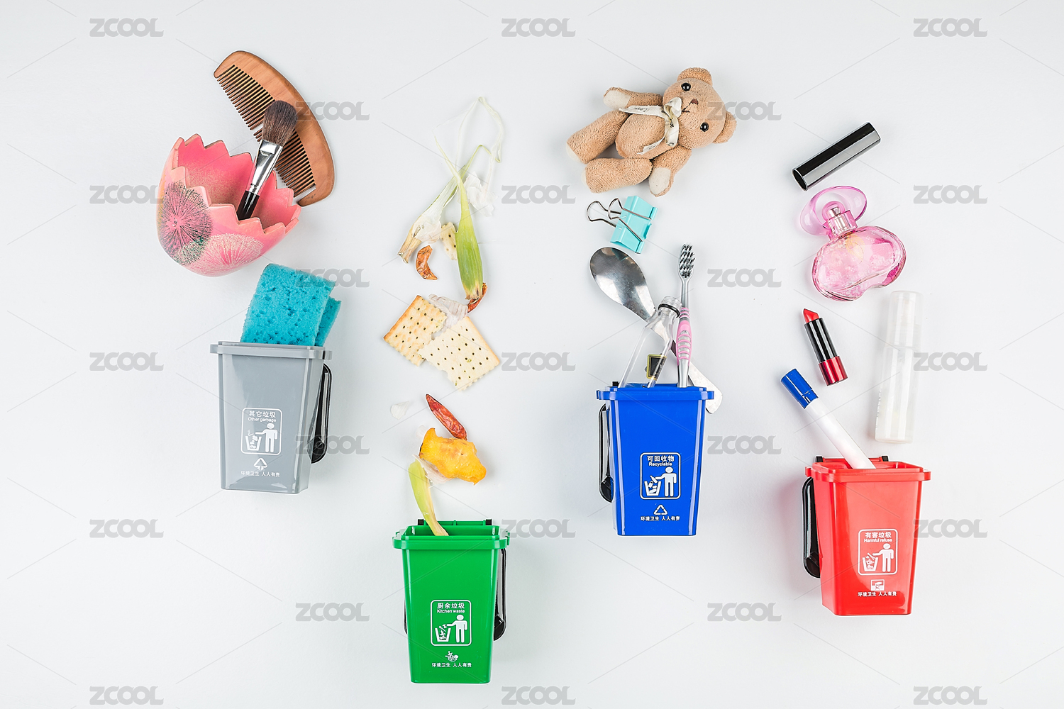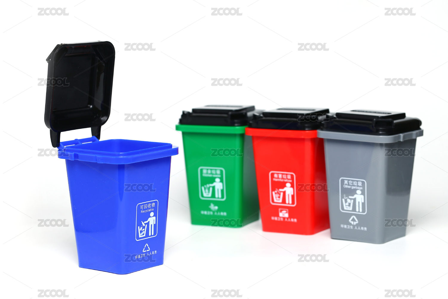 垃圾分類垃圾桶放在藍(lán)色背景前