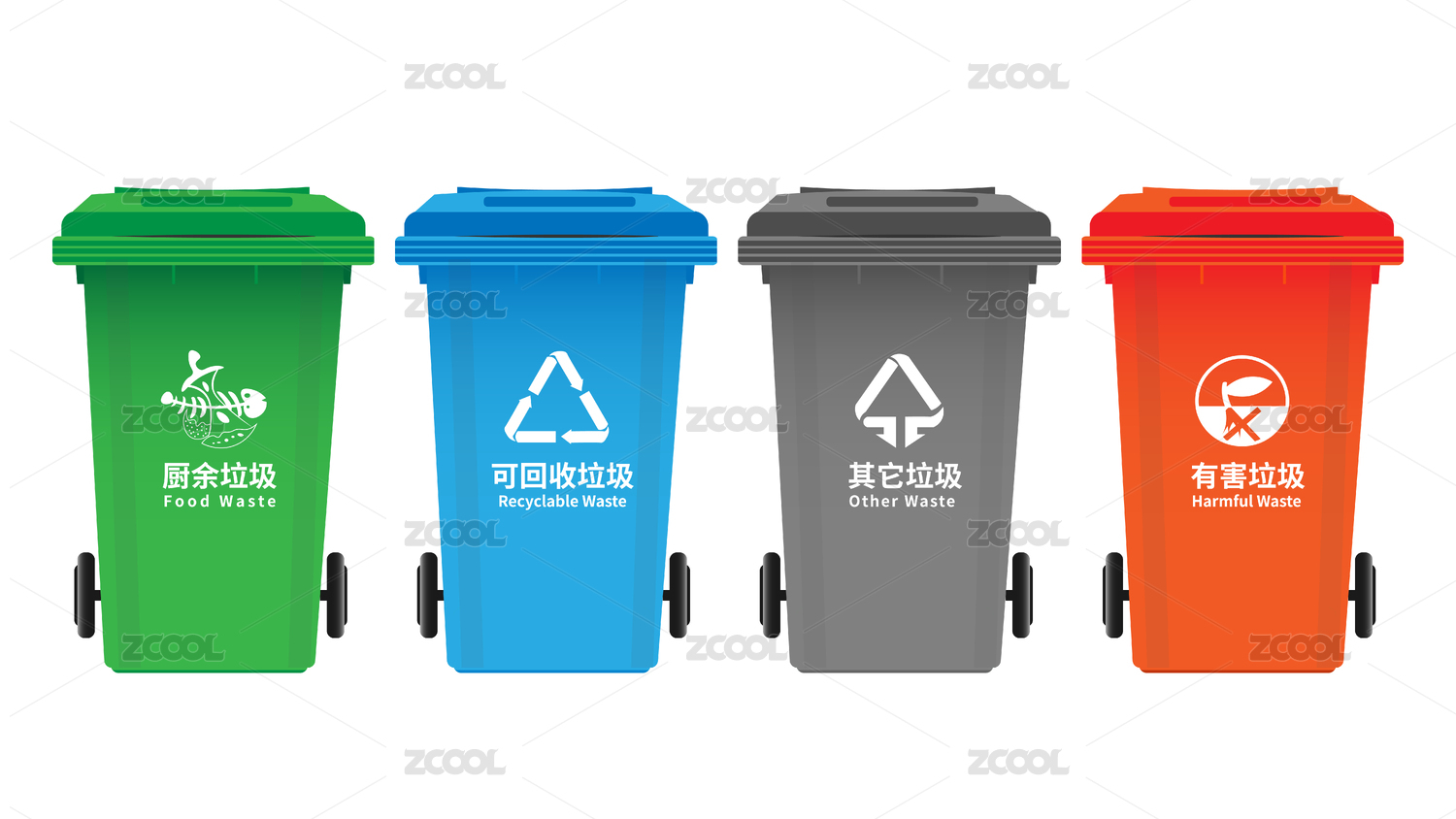 按照新分類的垃圾桶和對(duì)應(yīng)的垃圾種類