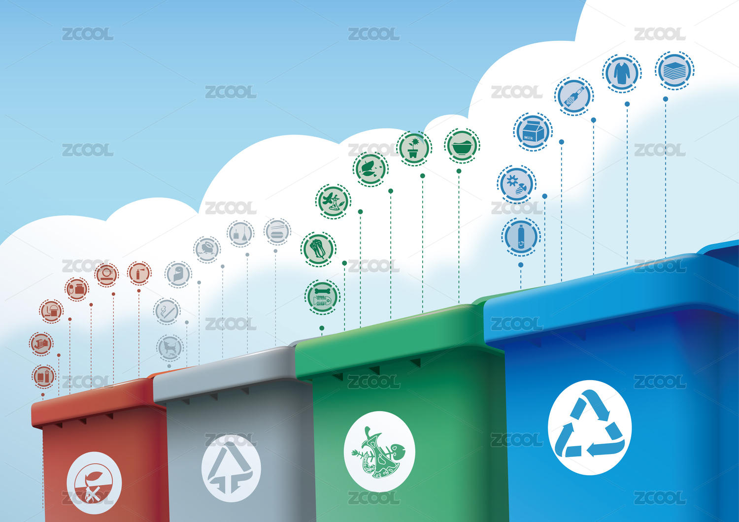 環(huán)保分類廚余垃圾創(chuàng)意潮流插畫