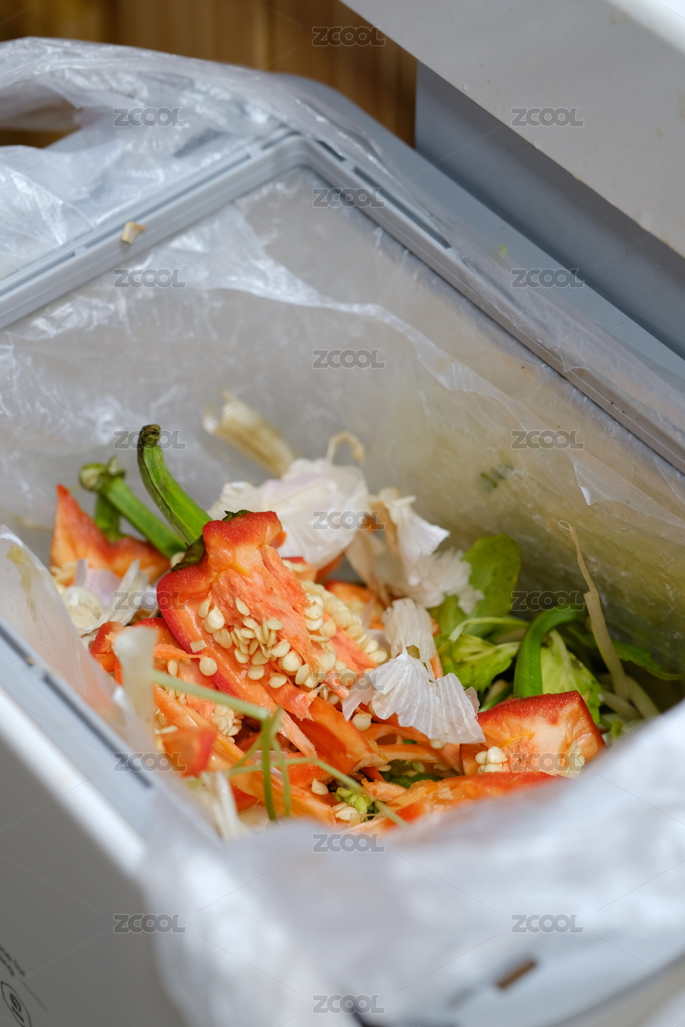 垃圾分類中盛放廚余垃圾的垃圾桶