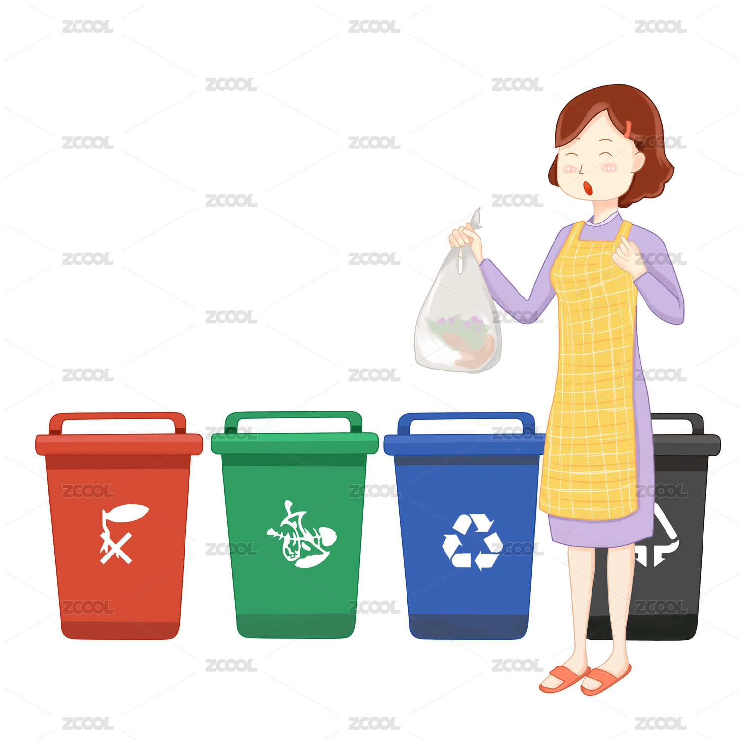 垃圾分類主題插畫-家庭主婦拎著廚余垃圾進(jìn)行正確分類