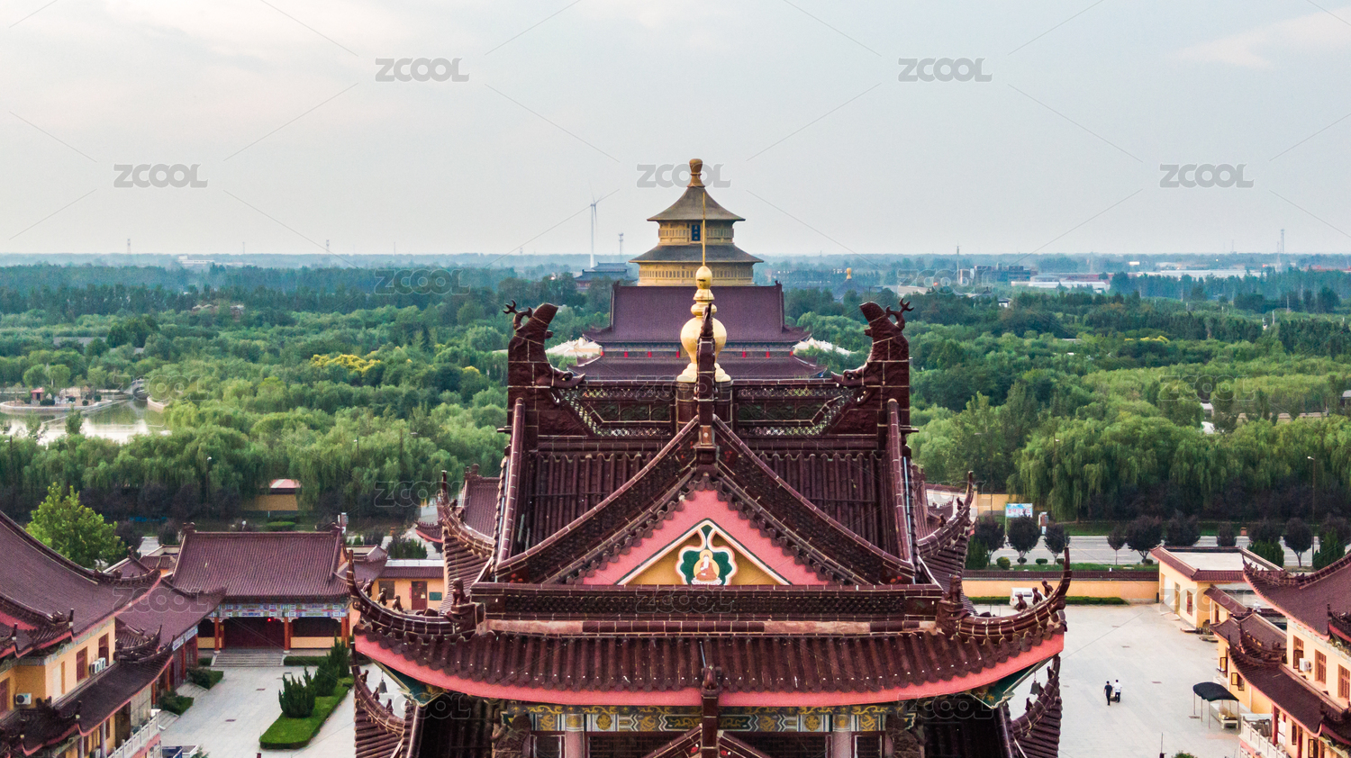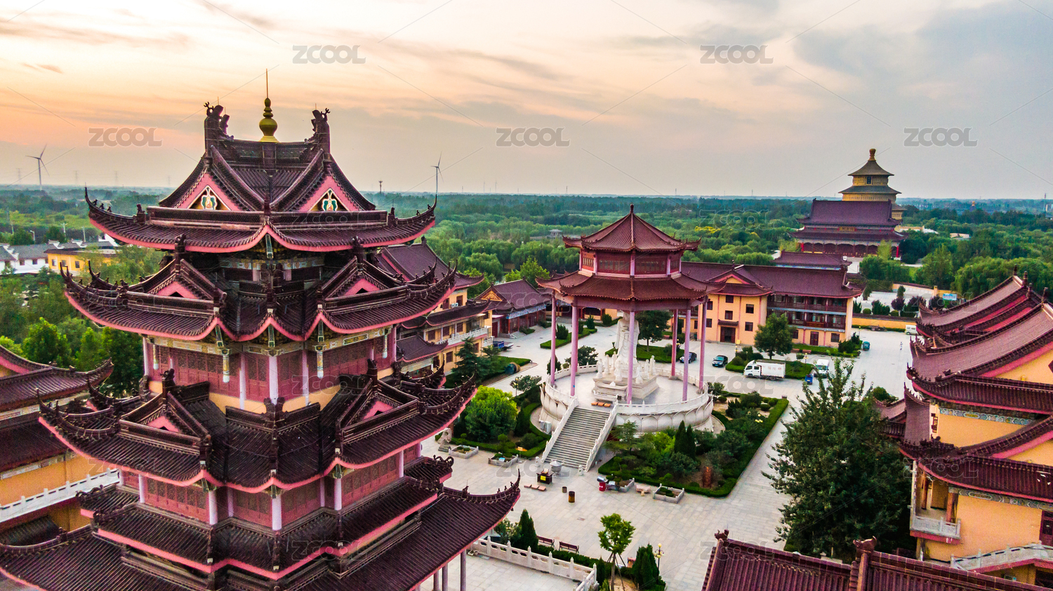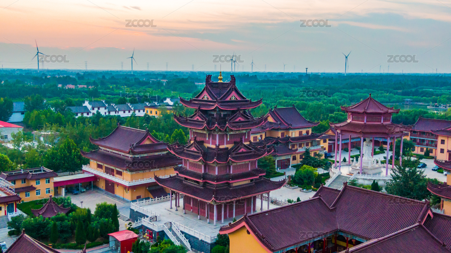 中國山東省德州市慶云縣海島金山寺景區(qū)藏經(jīng)樓航拍