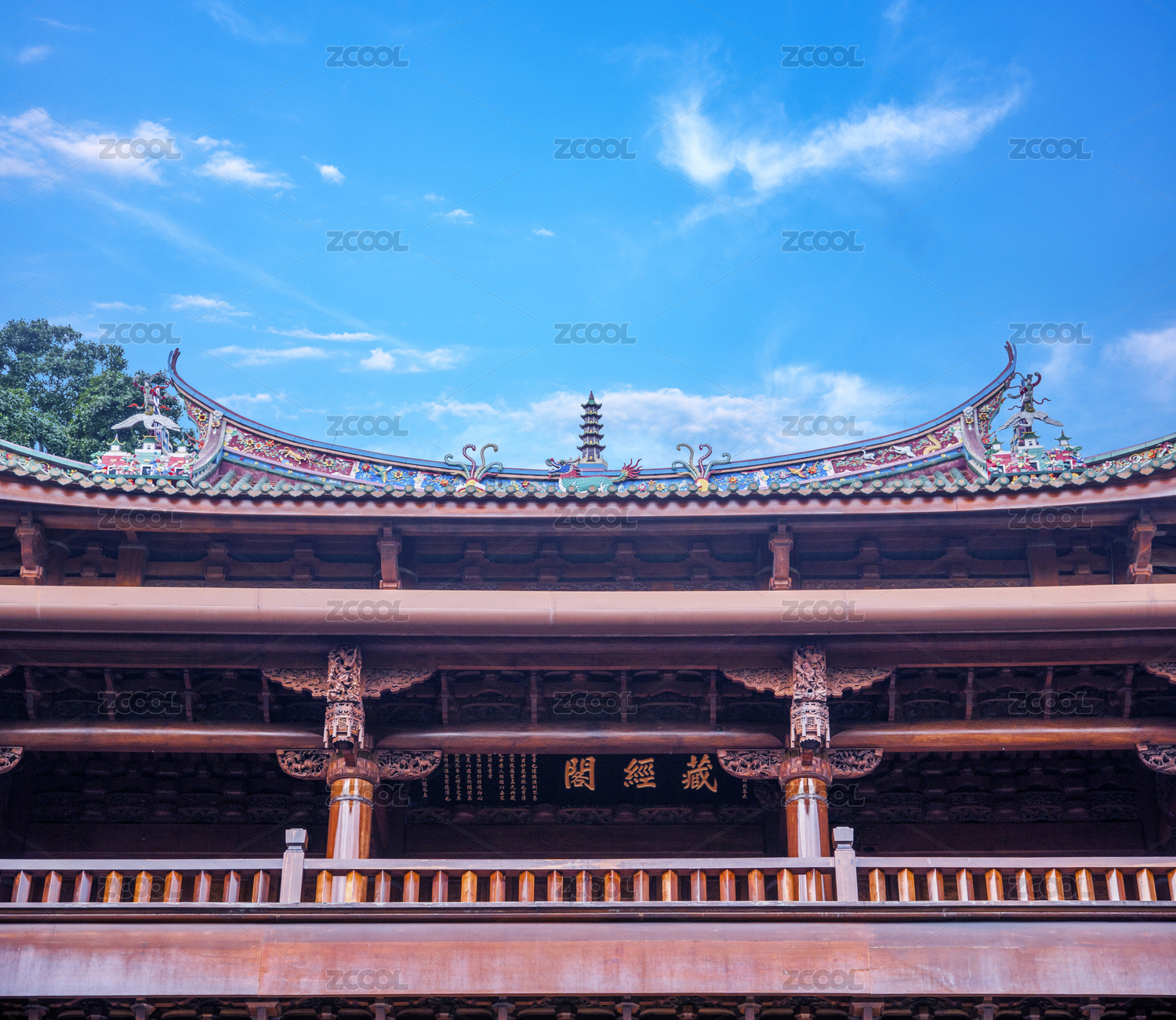 中國山東省德州市慶云縣海島金山寺景區(qū)藏經(jīng)樓屋檐特寫